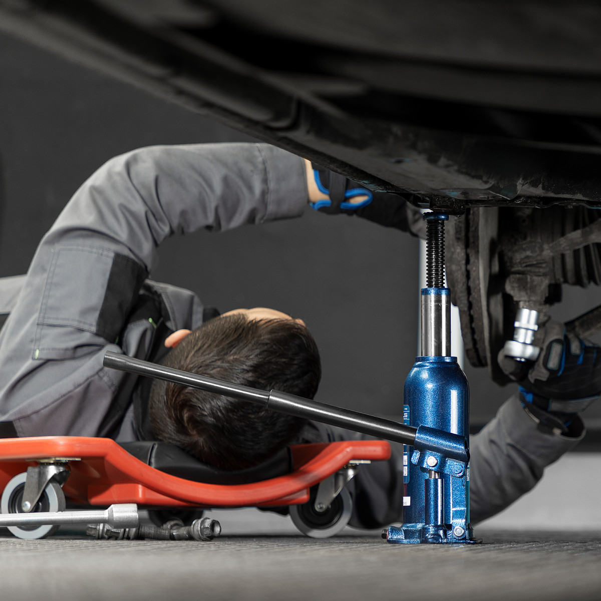 • Безопасная эксплуатация — благодаря предохранительному клапану домкрат не поднимает грузы тяжелее 5000 кг.