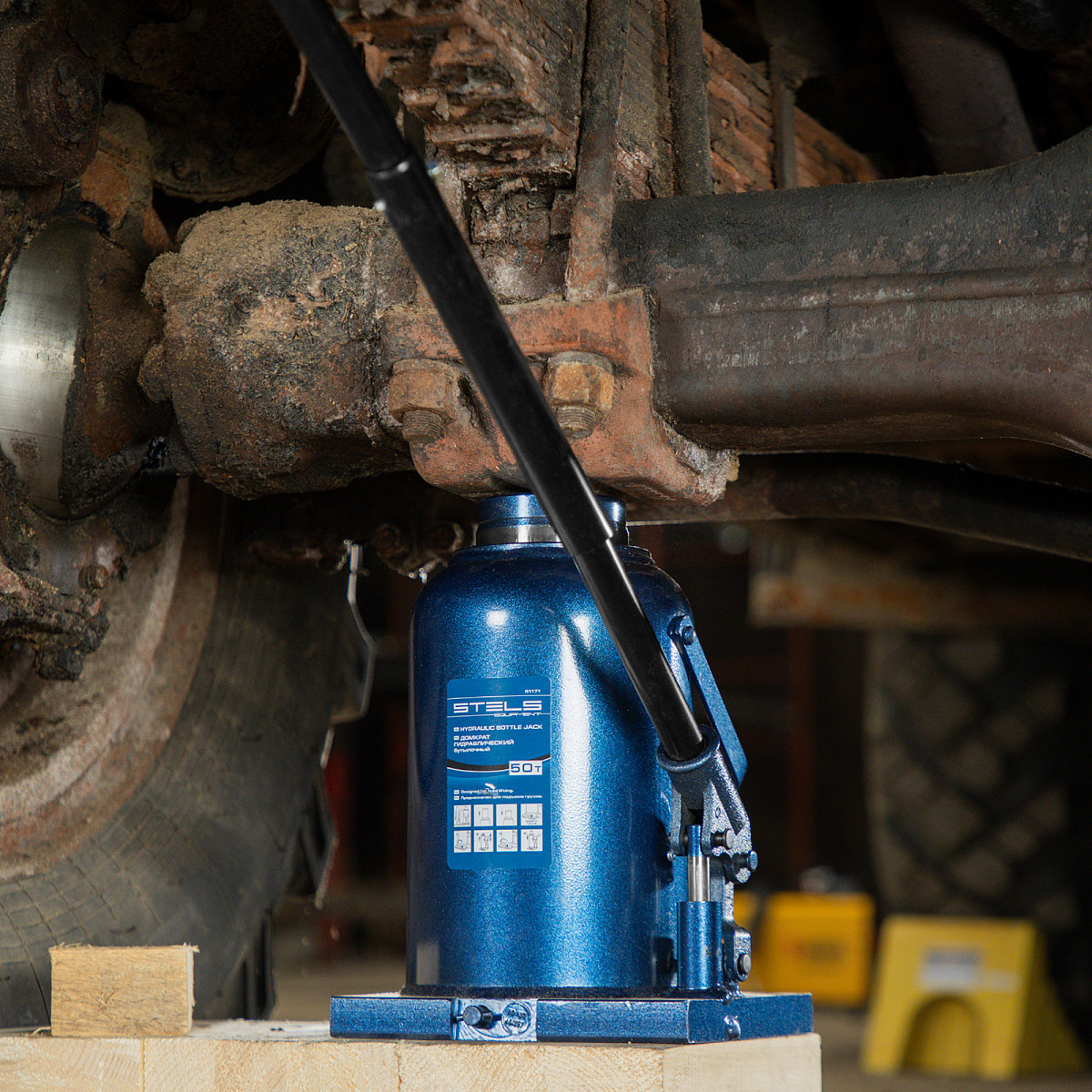 - Безопасная эксплуатация — благодаря предохранительному клапану домкрат не поднимает грузы тяжелее 50 т.