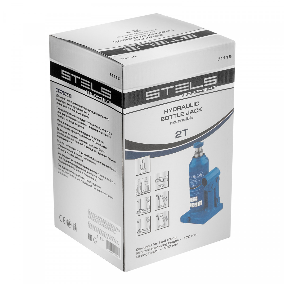 Гидравлический бутылочный телескопический домкрат Stels 51115 используется для поднятия грузов весом до 2 т с на высоту 170-380 мм. Не требует больших усилий и оптимален для автомобилей с большим клиренсом. Домкрат можно использовать в гараже для самостоятельного ремонта машины или в автосервисе для решения профессиональных задач.
