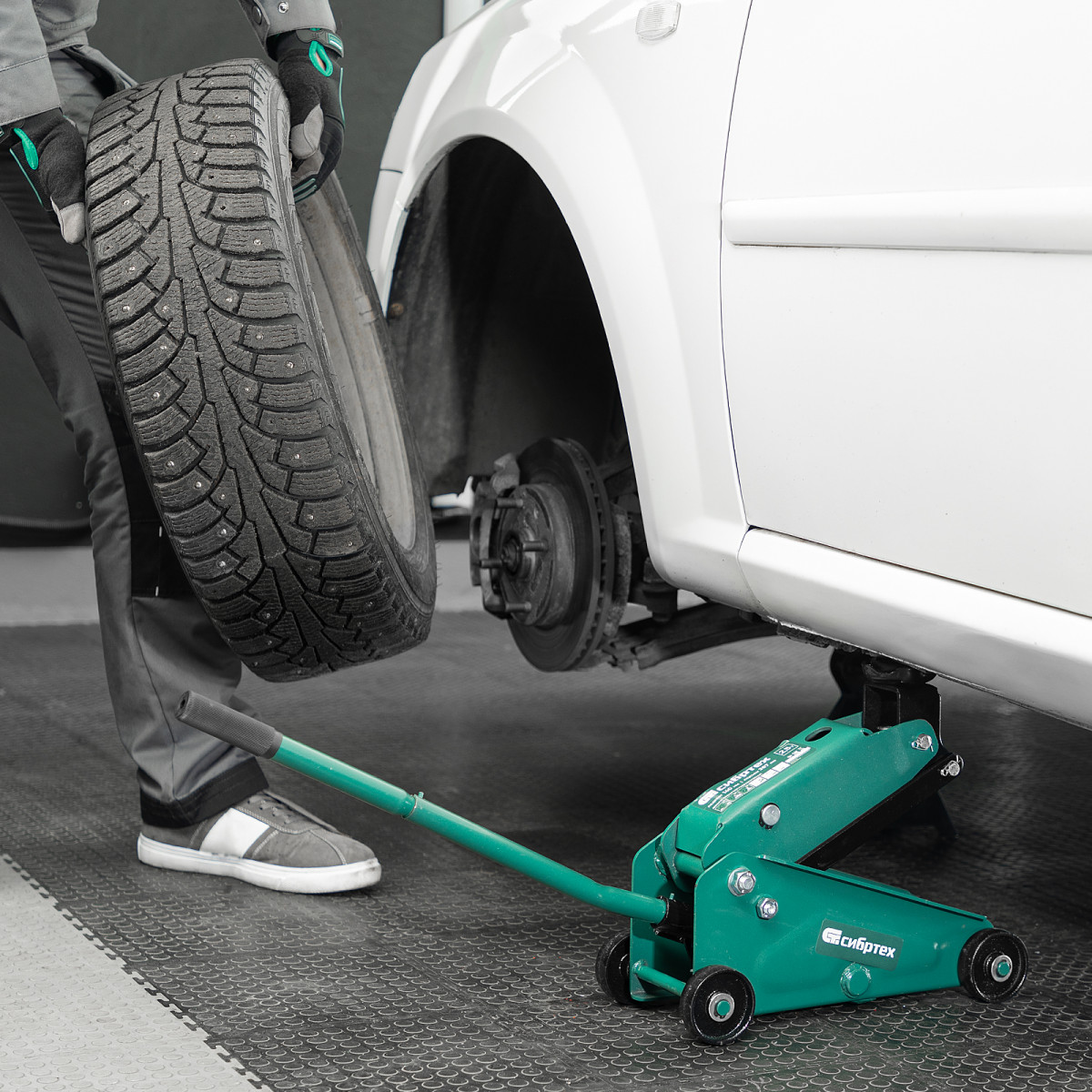 - Маневренность — благодаря поворотным колесам домкрат можно быстро подвести под груз.