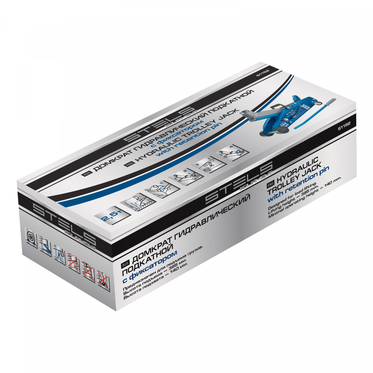 Подкатной гидравлический домкрат Stels Safety Pin 51152 с фиксатором, с высотой подхвата 140 мм, позволяет поднимать грузы весом до 2,5 т на высоту 385 мм. За счет низкого подхвата используется для обслуживания автомашин со стандартным дорожным просветом. Домкрат подходит для самостоятельного обслуживания авто.