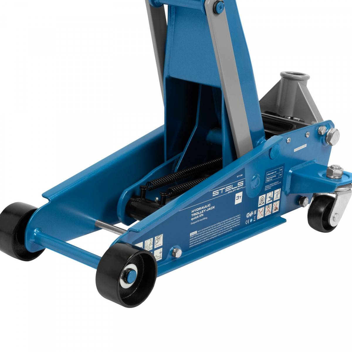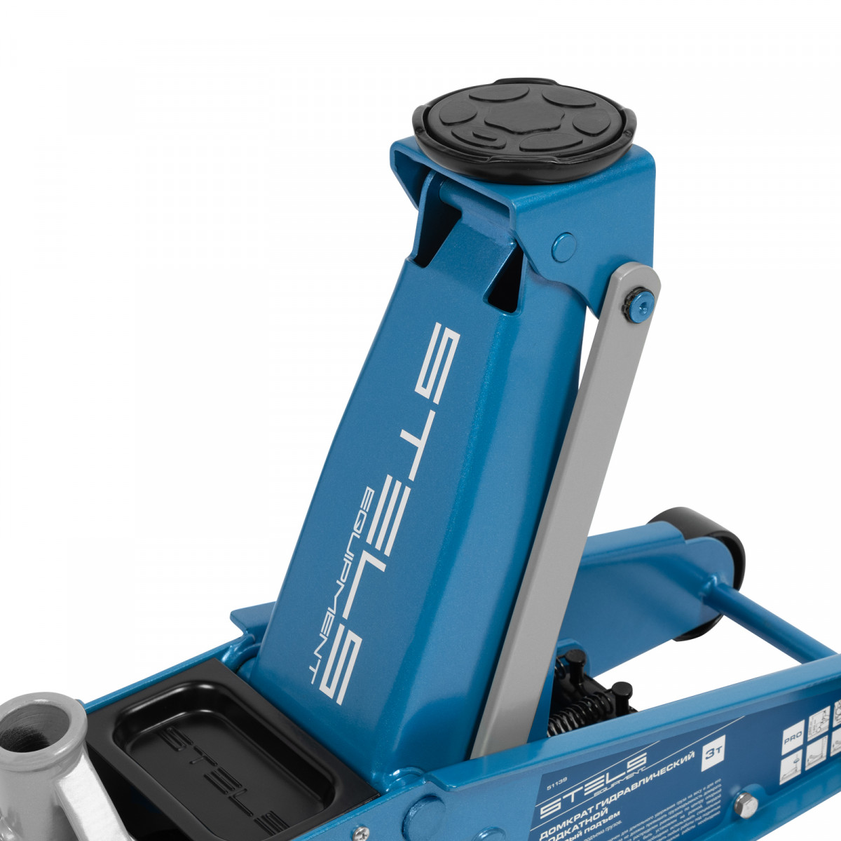 Профессиональный подкатной гидравлический домкрат Stels 51139 используется для быстрого подъема на высоту 120-450 мм всех типов автомобилей со стандартным клиренсом и массой до 3 тонн. Благодаря системе быстрого подъема QUICK LIFT для достижения предельной высоты достаточно 6 качков рукоятки. Домкрат подходит для использования на станциях техобслуживания и шиномонтажа.