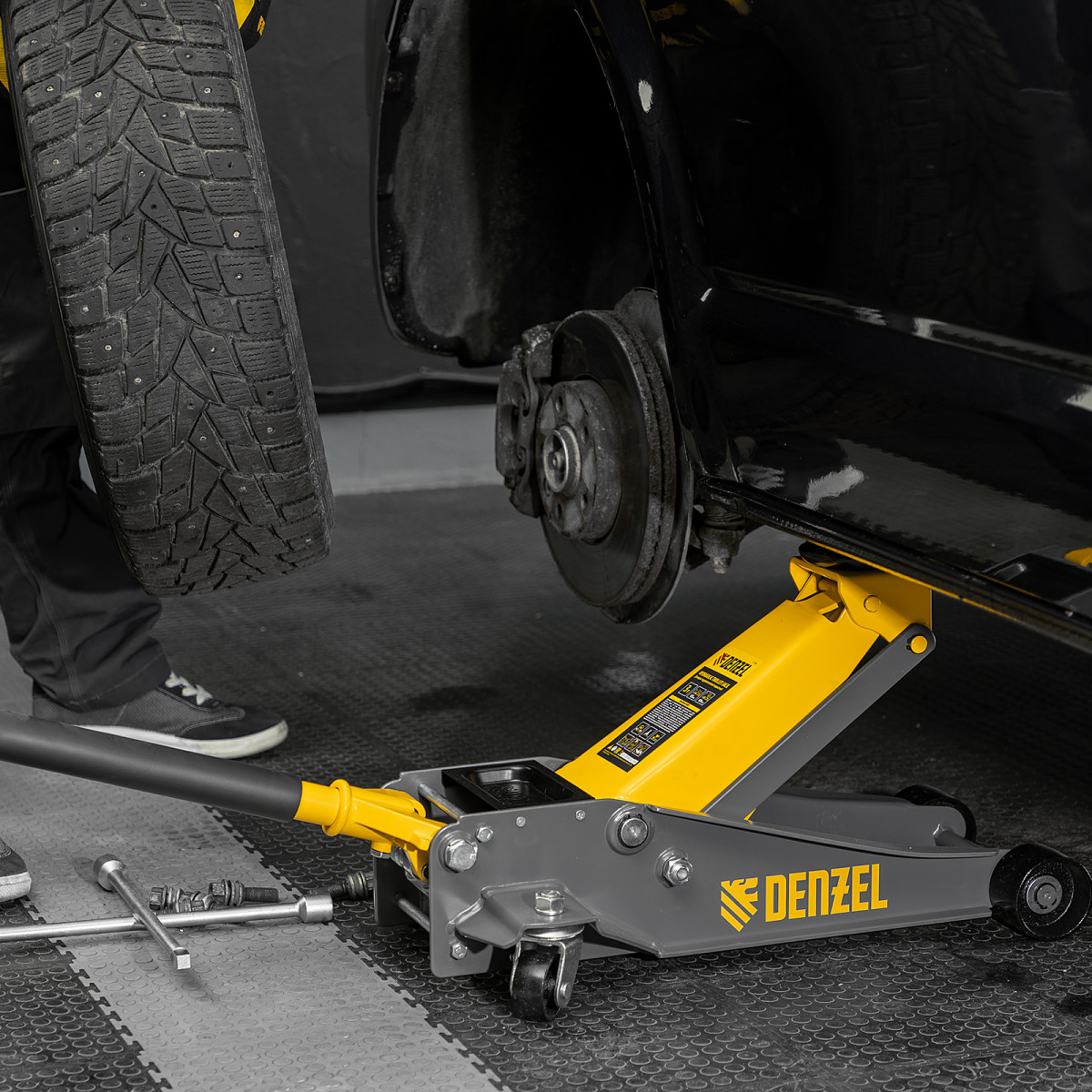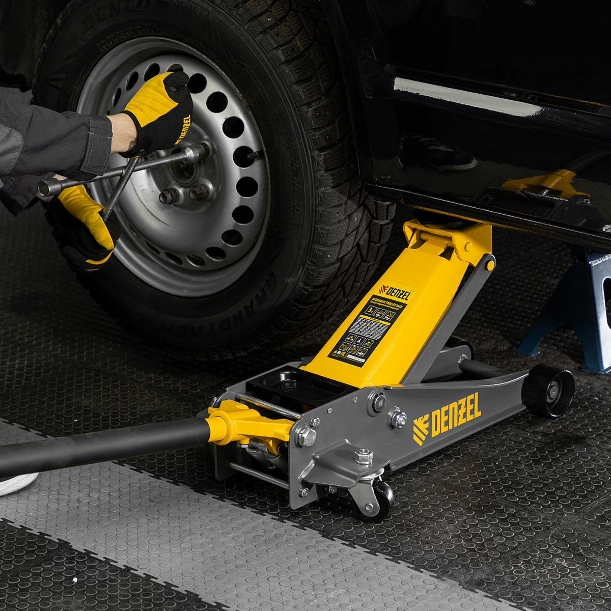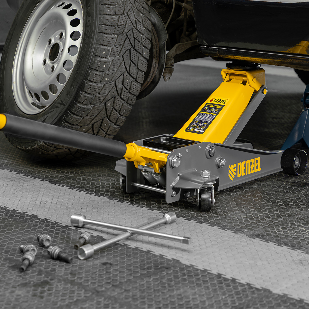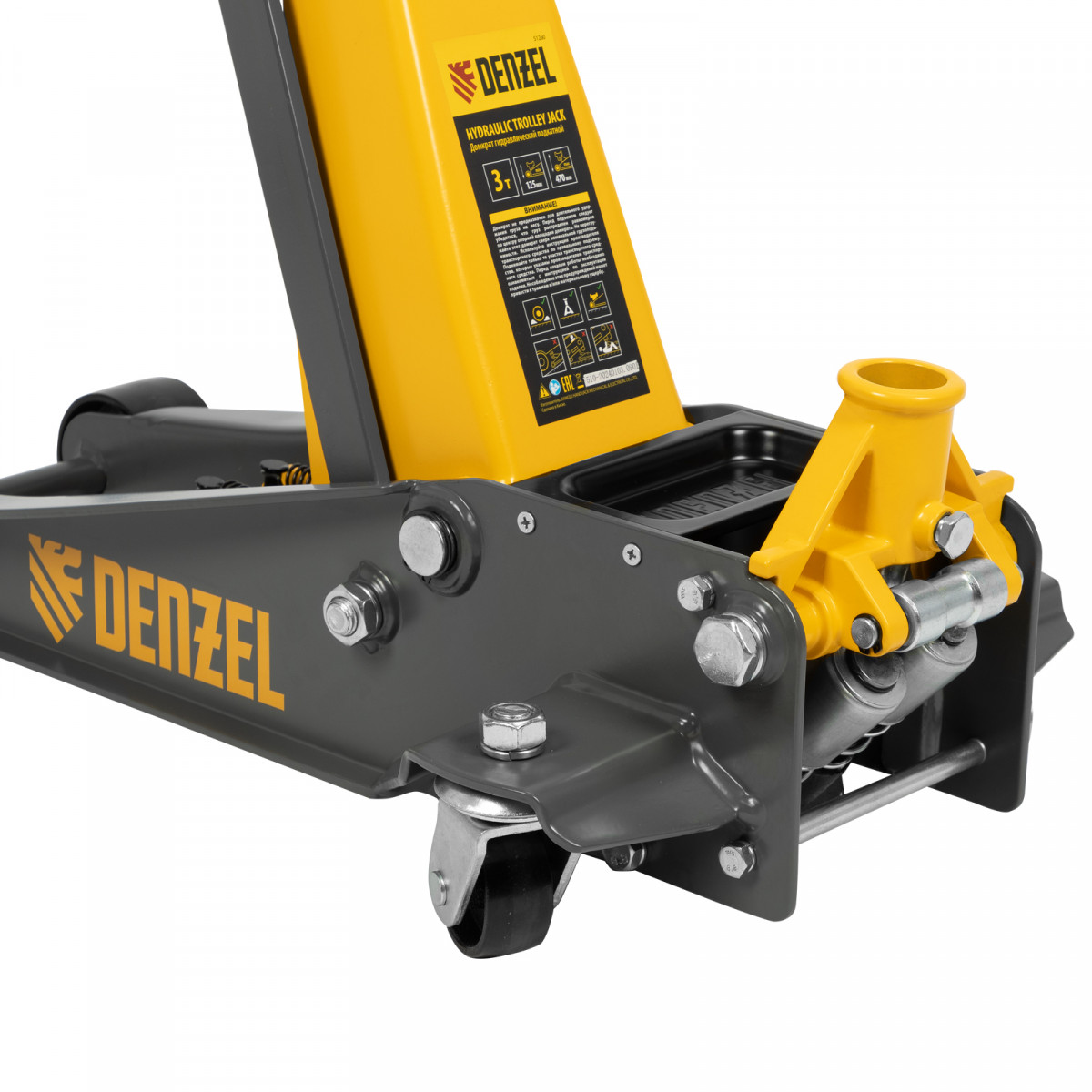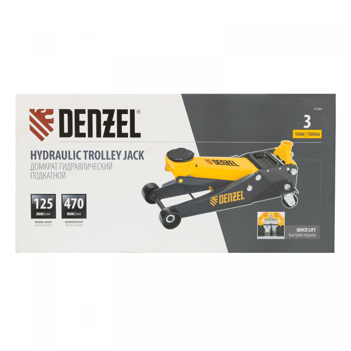 Домкрат гидравлический подкатной, 3 т, 125-470 мм, быстрый подъем, проф. Denzel