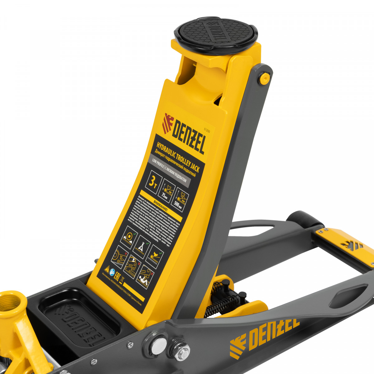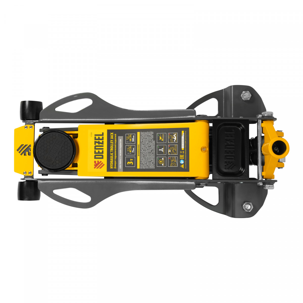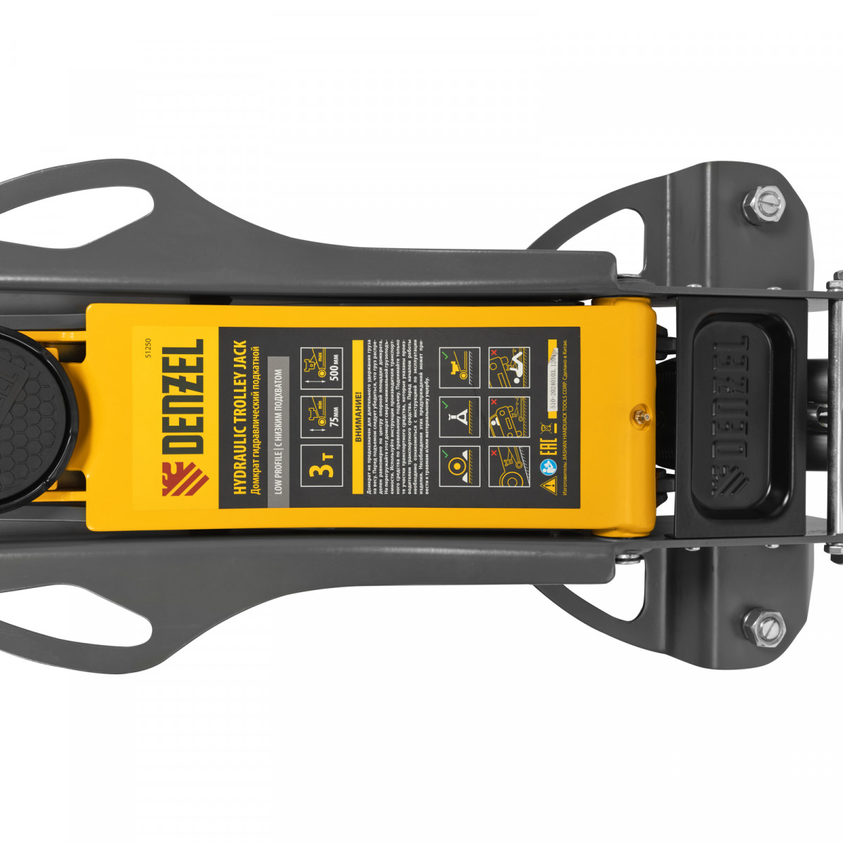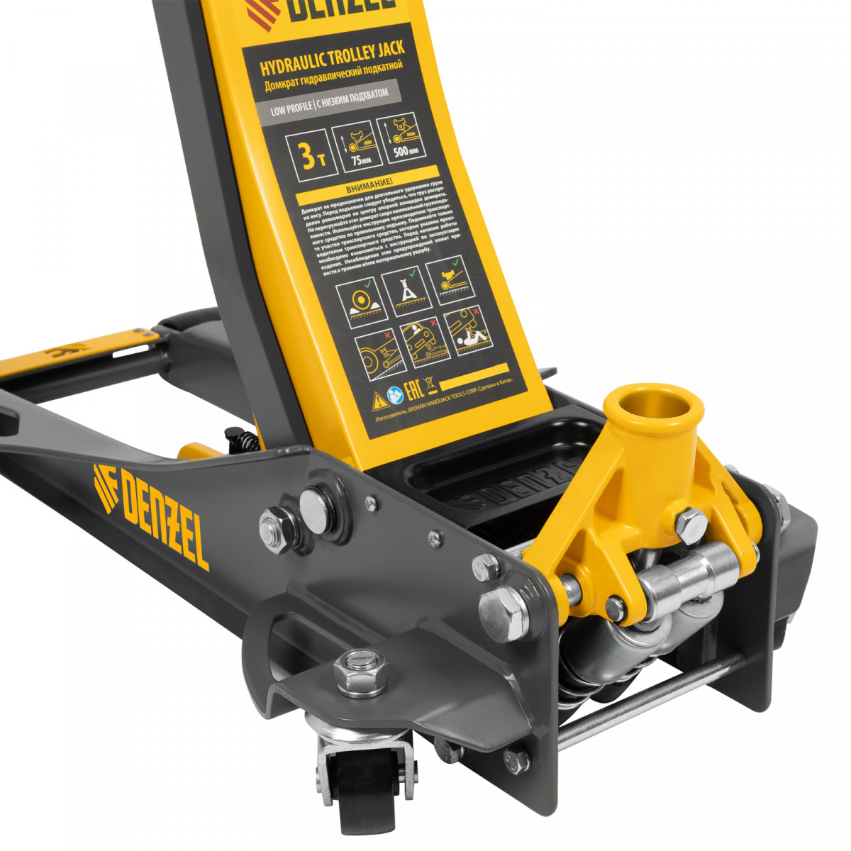 Домкрат гидравлический подкатной, 3 т, 75-500 мм, быстрый подъем, низкий подхват, проф. Denzel