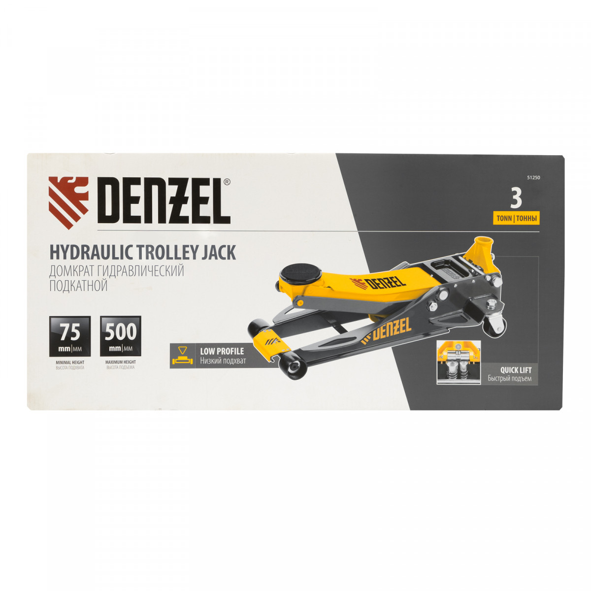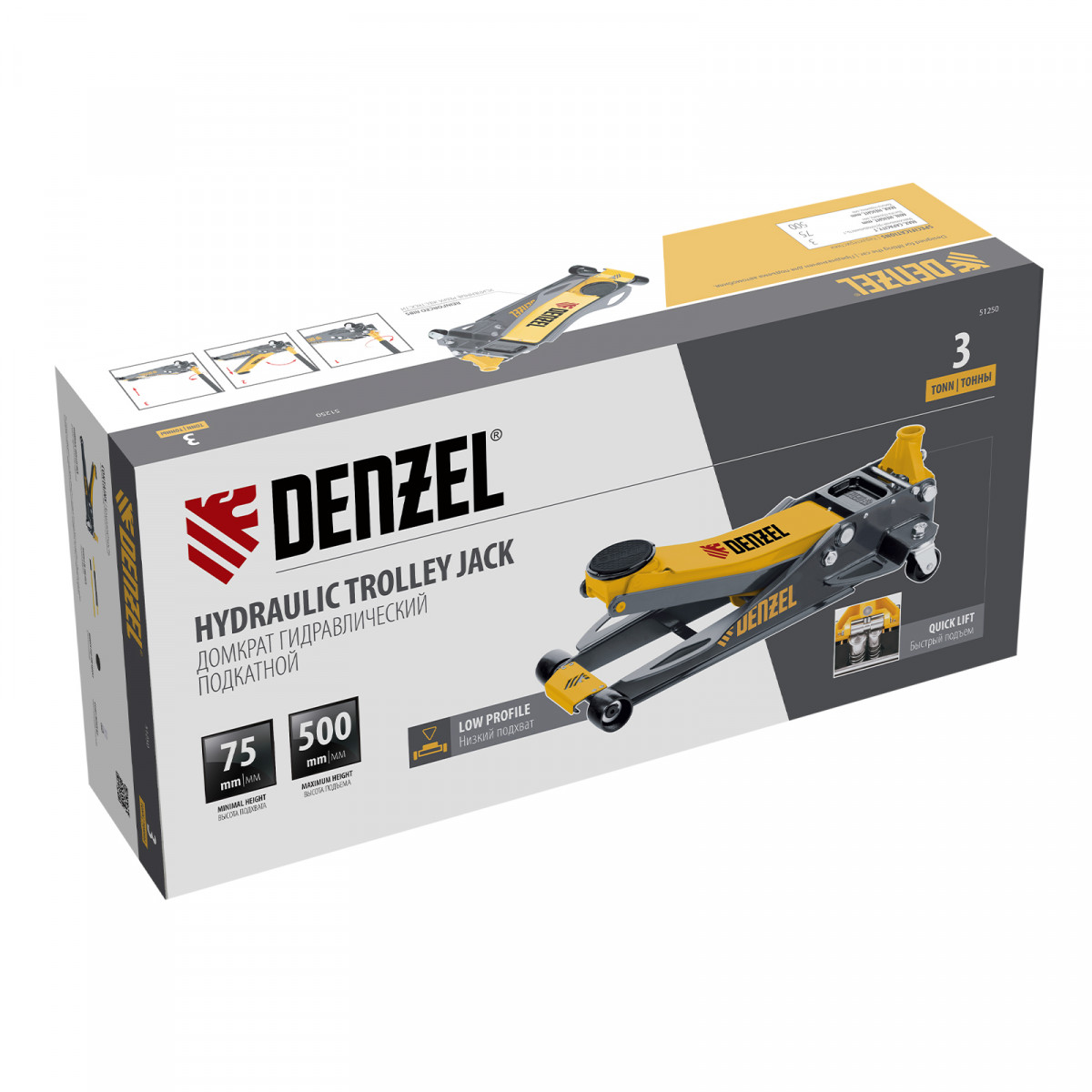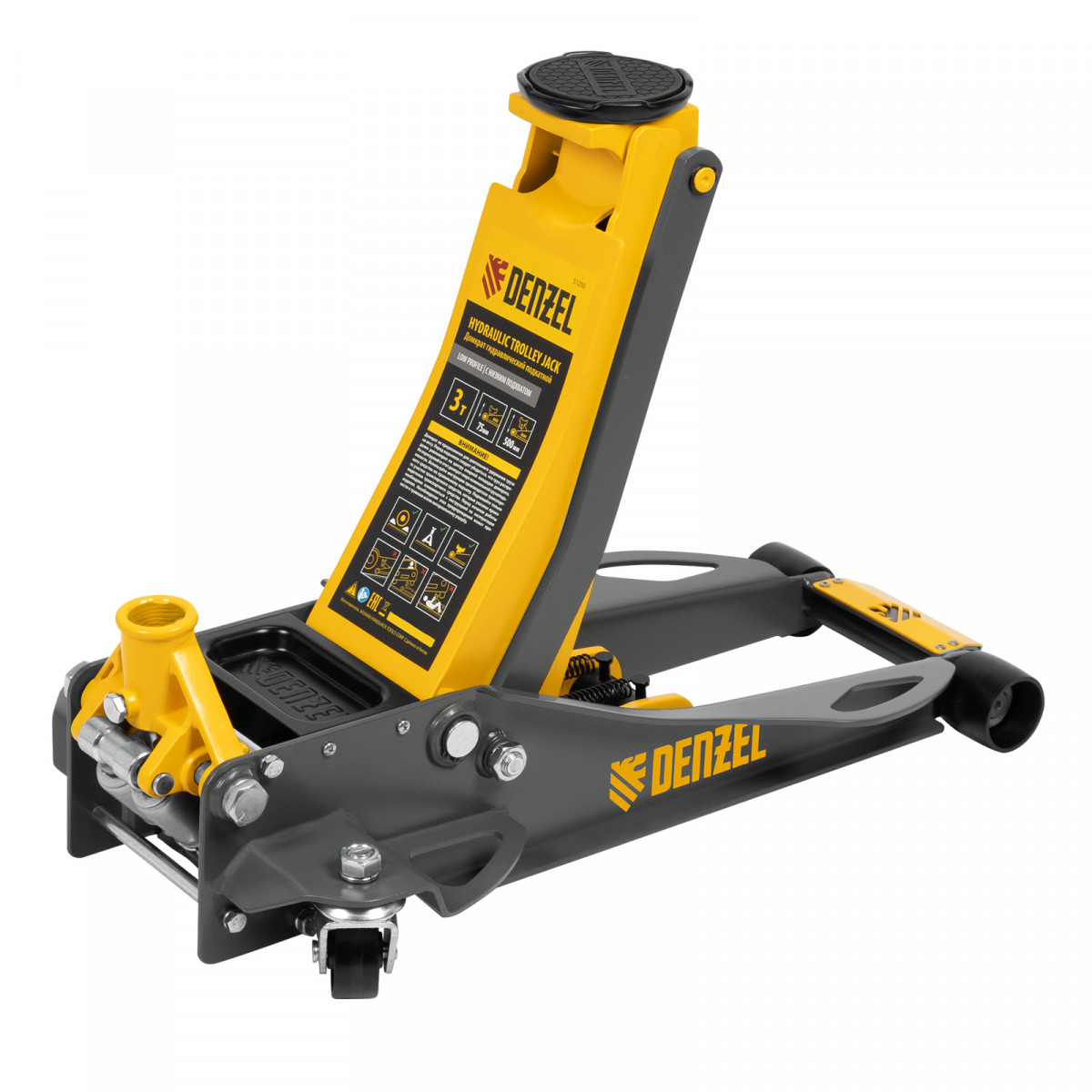 Домкрат гидравлический подкатной, 3 т, 75-500 мм, быстрый подъем, низкий подхват, проф. Denzel