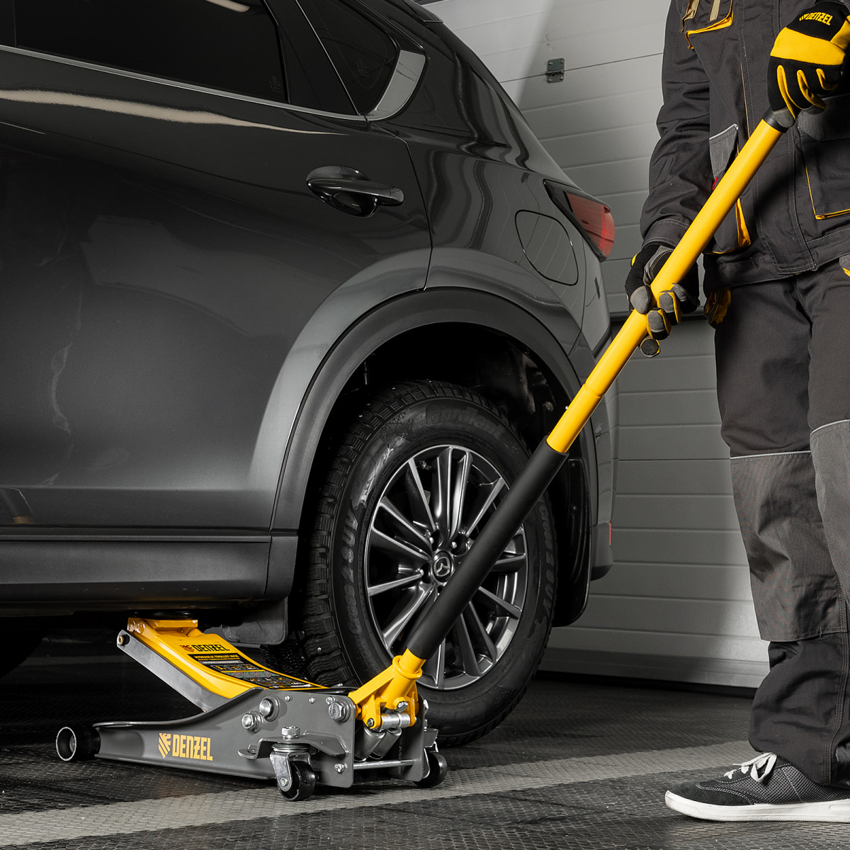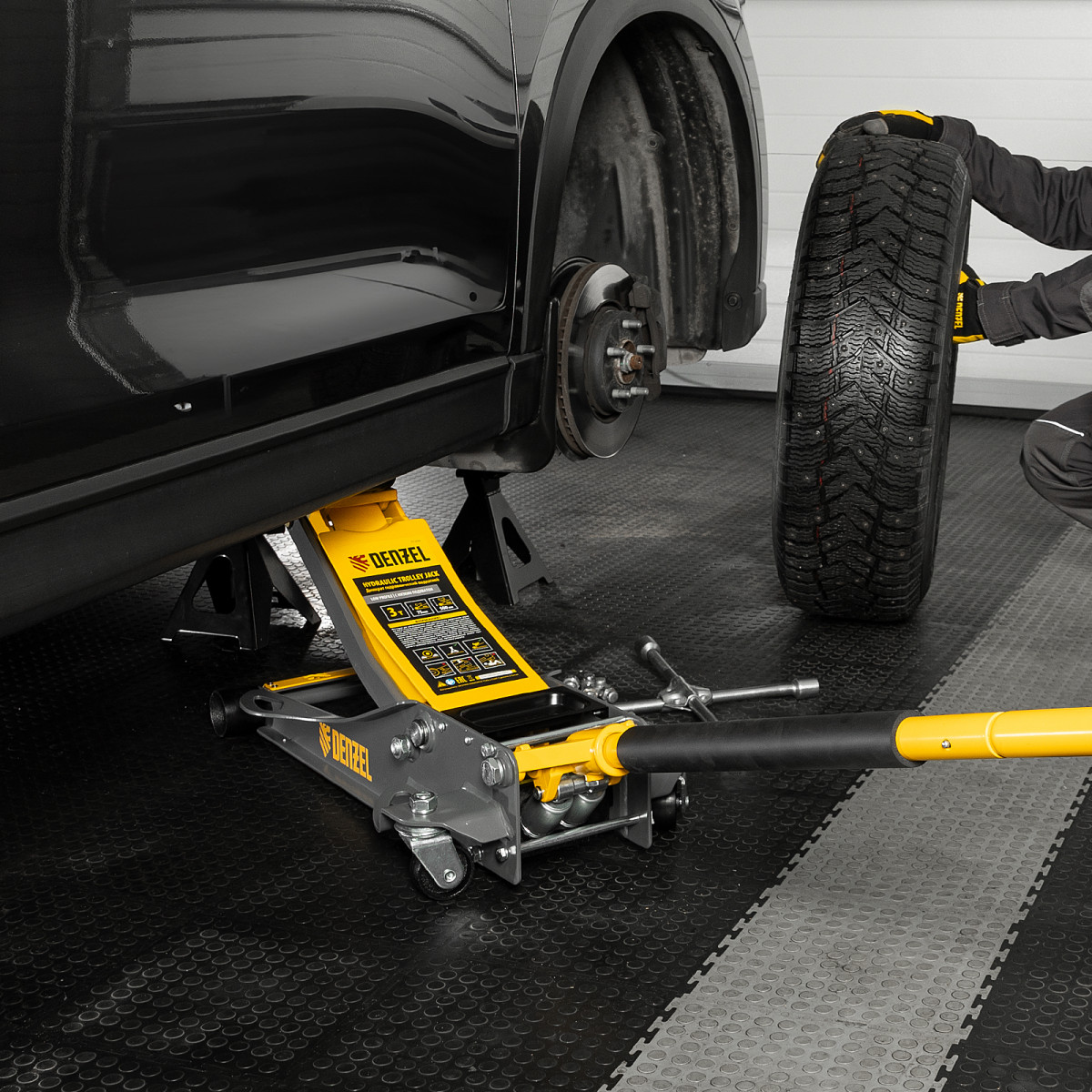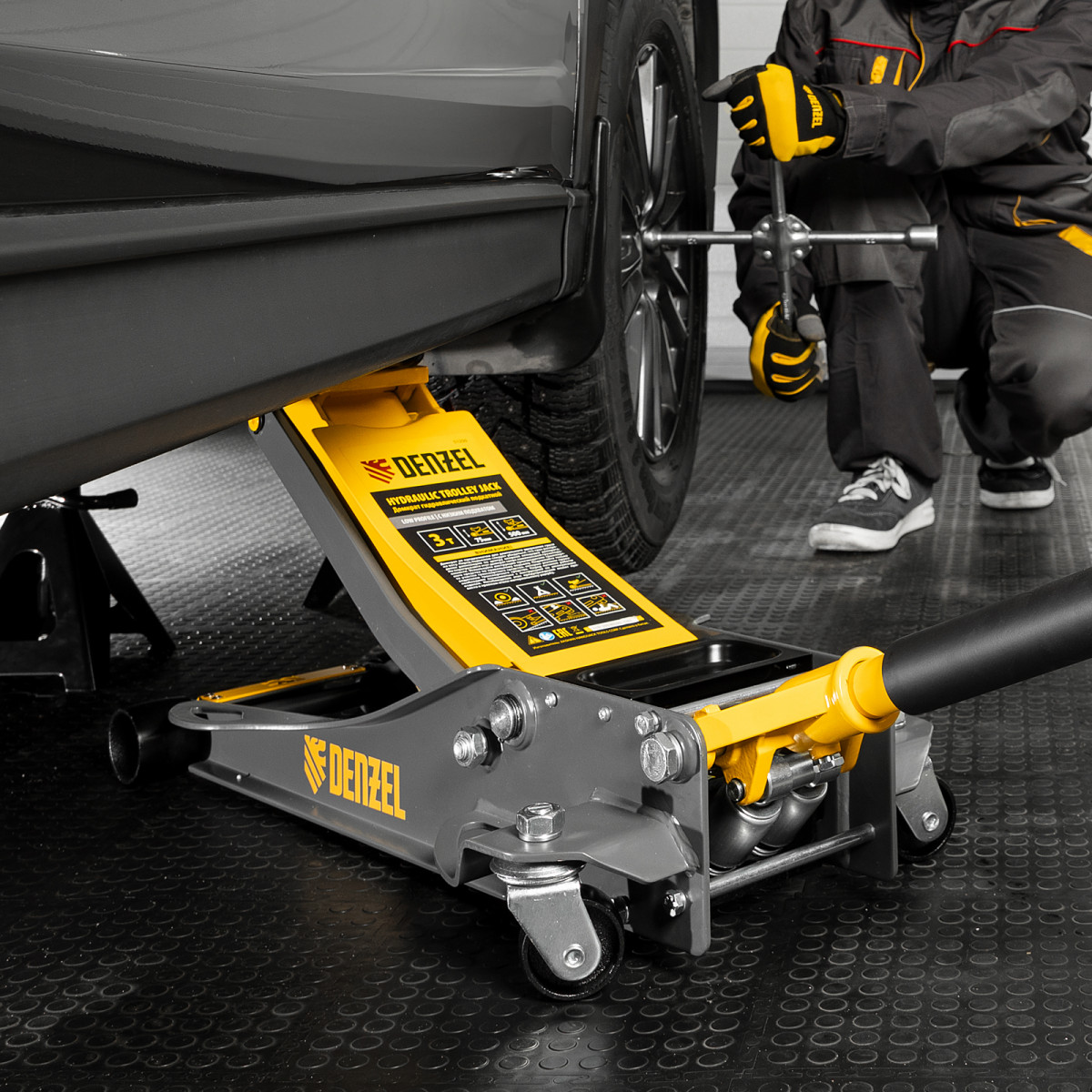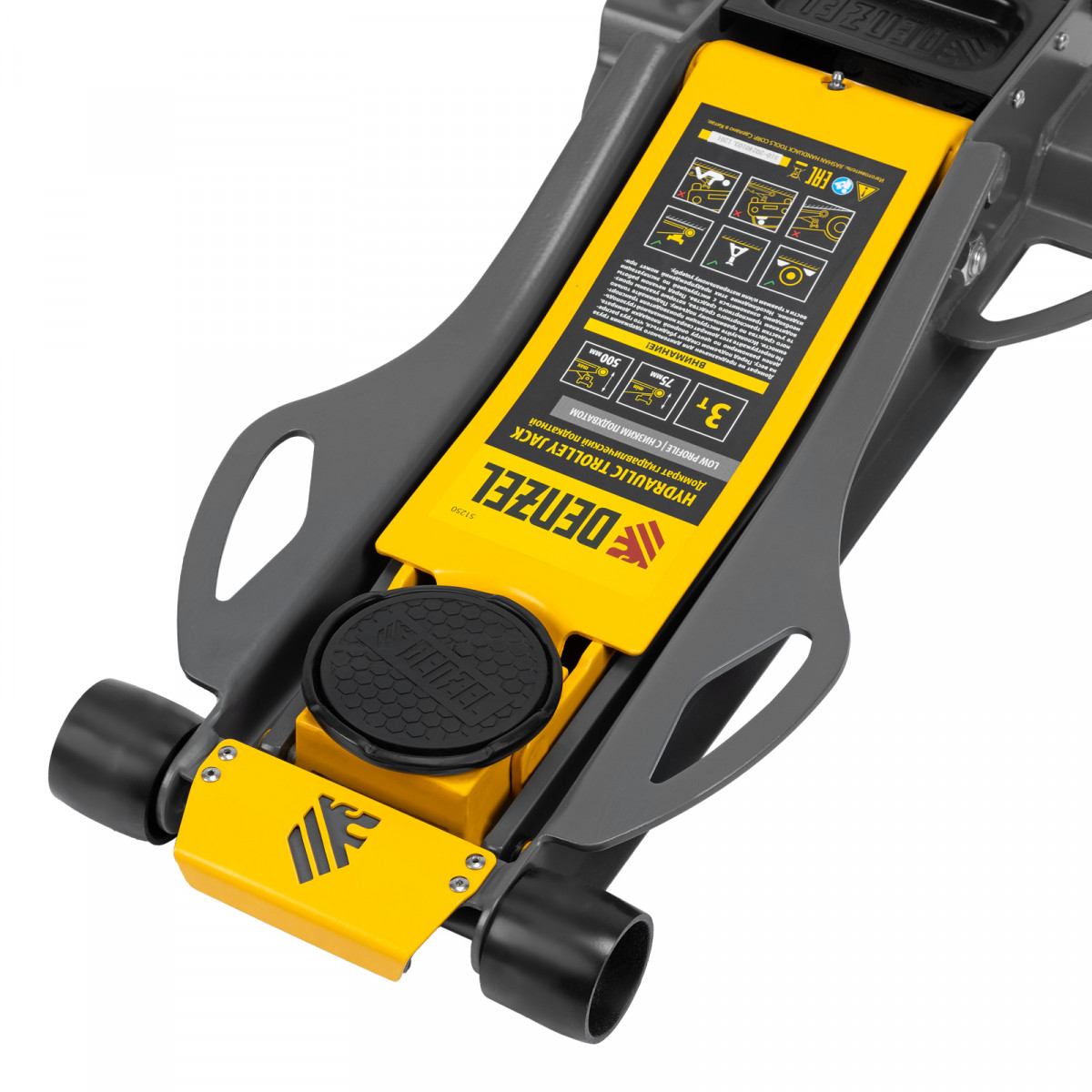 Домкрат гидравлический подкатной, 3 т, 75-500 мм, быстрый подъем, низкий подхват, проф. Denzel
