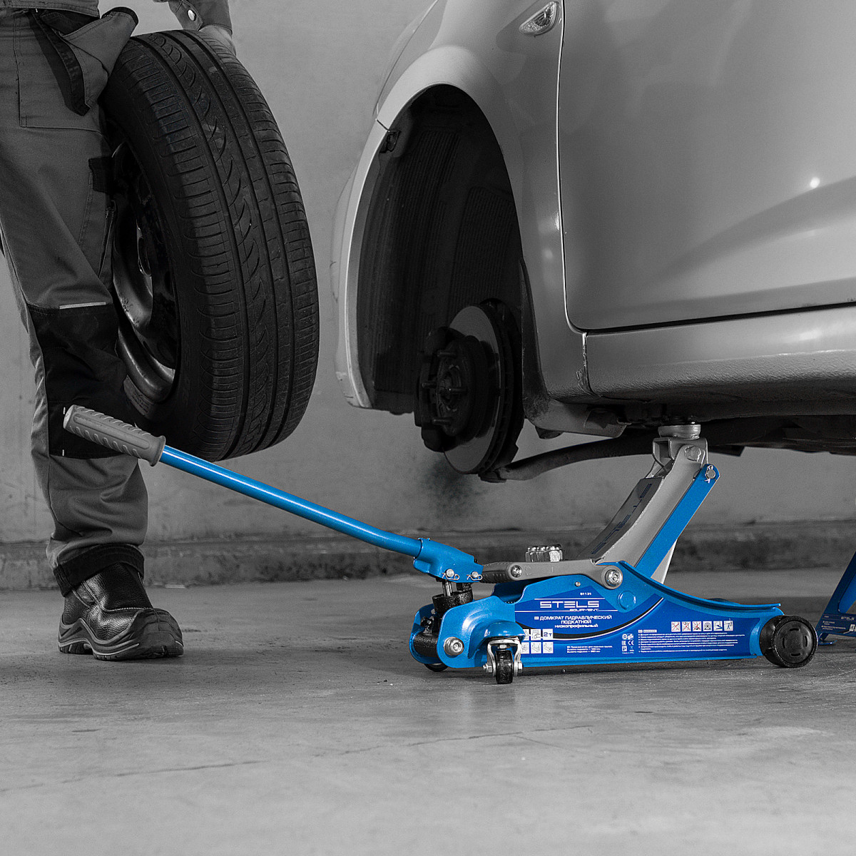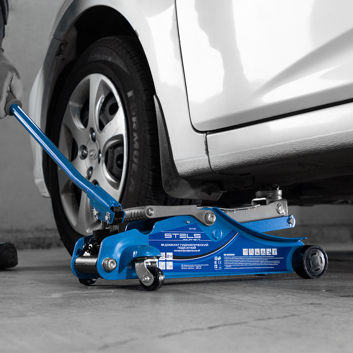 Подкатной гидравлический домкрат Stels Low Profile 51131 с поворотной рукояткой позволяет поднимать грузы весом до 2 т на высоту от 100 до 350 мм. За счет низкого подхвата 100 мм используется для обслуживания автомашин с невысоким дорожным просветом. Благодаря поворотной ручке позволяет работать в условиях нехватки пространства. Домкрат подходит для самостоятельного обслуживания авто.
