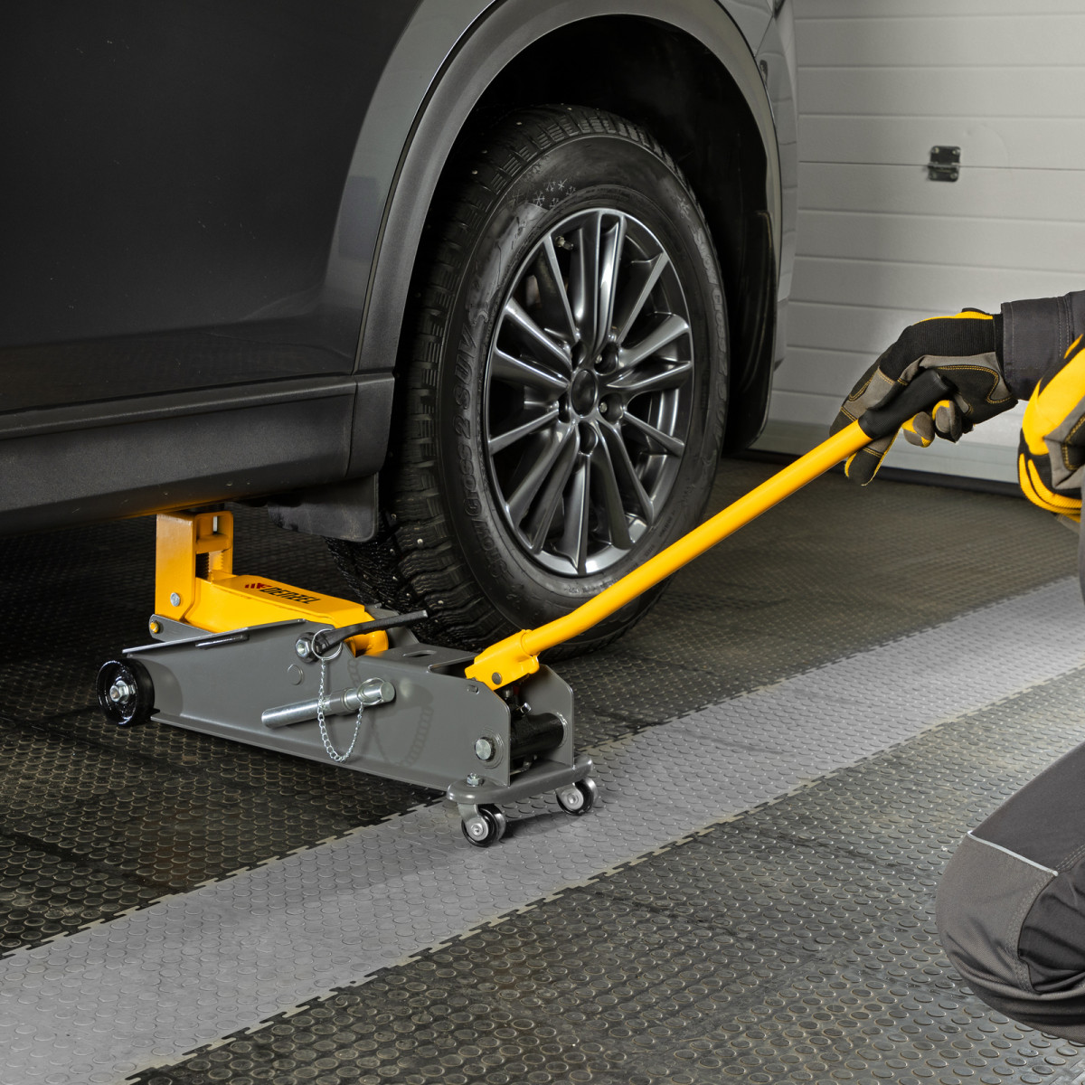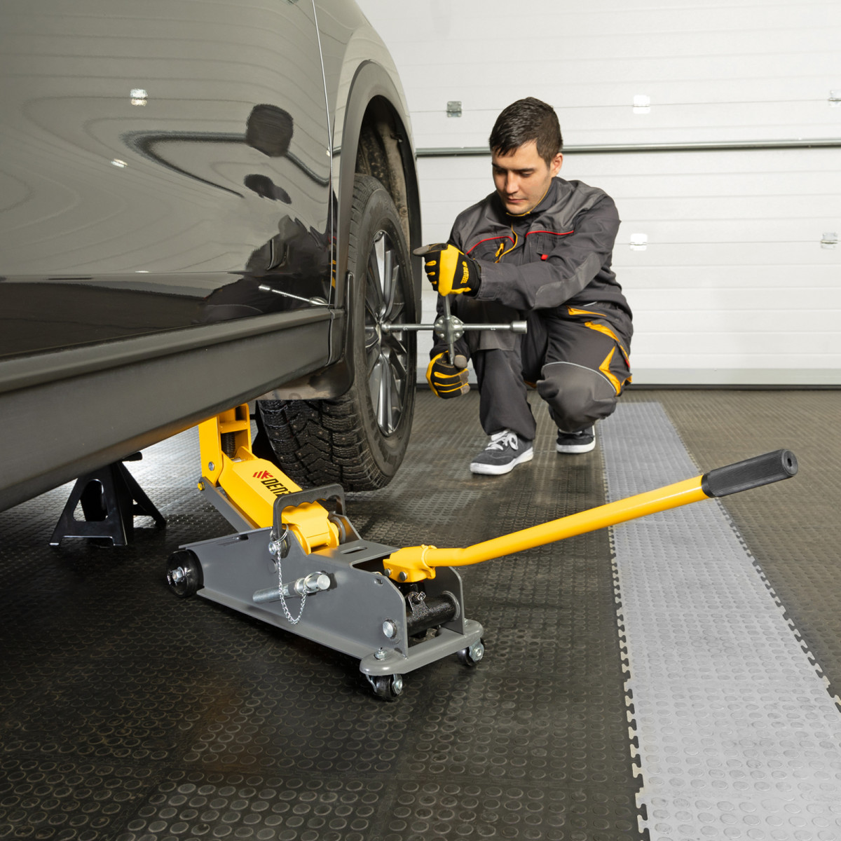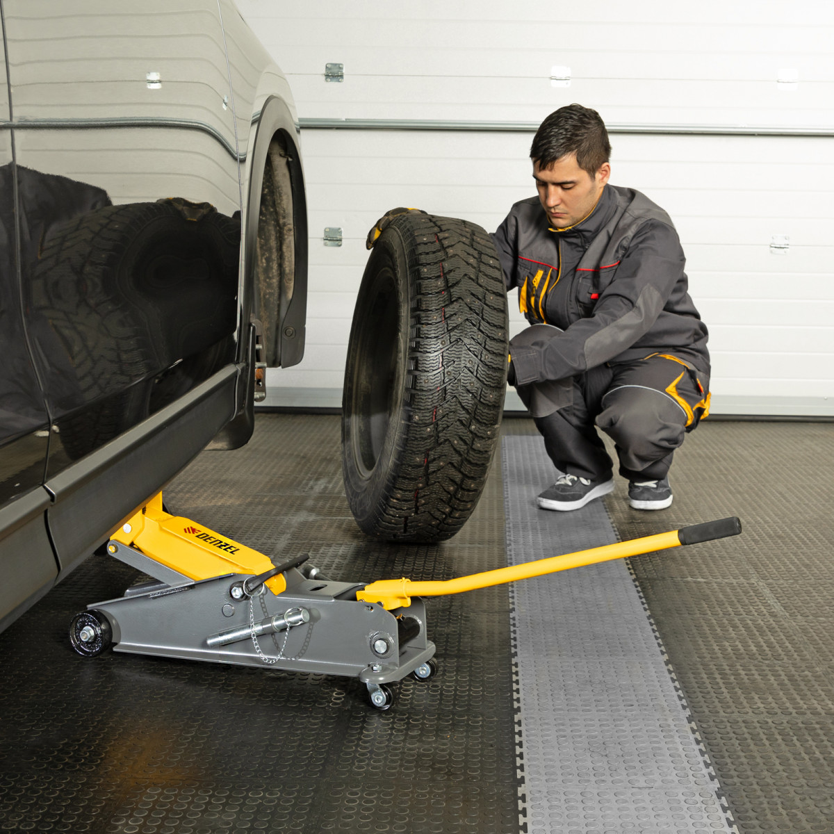 • Аккуратная работа — резиновая опора защищает днище автомобиля от нежелательных повреждений.
