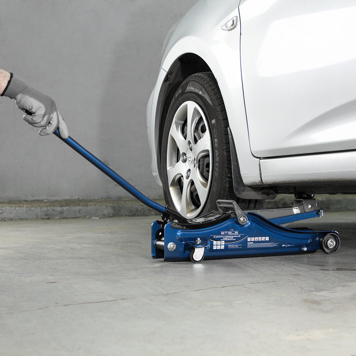 Домкрат гидравлический подкатной в пластиковом кейсе, 2 т, Low Profile, 80-380 мм Stels