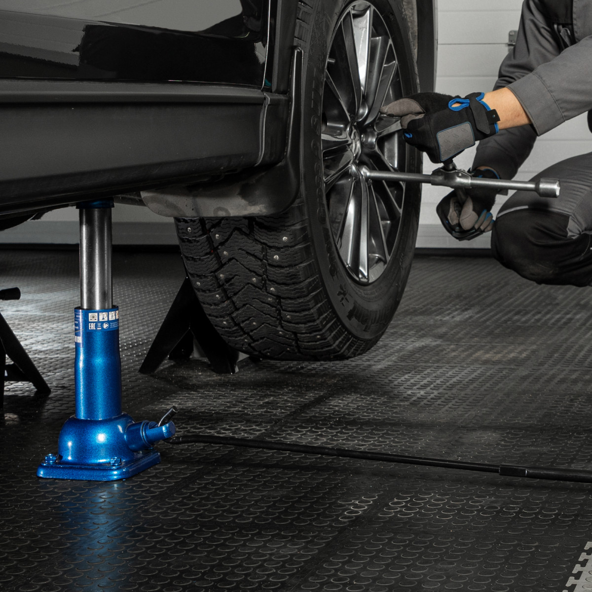 - Удобная транспортировка — компактный домкрат весом 3,93 кг легко помещается в багажник автомобиля.