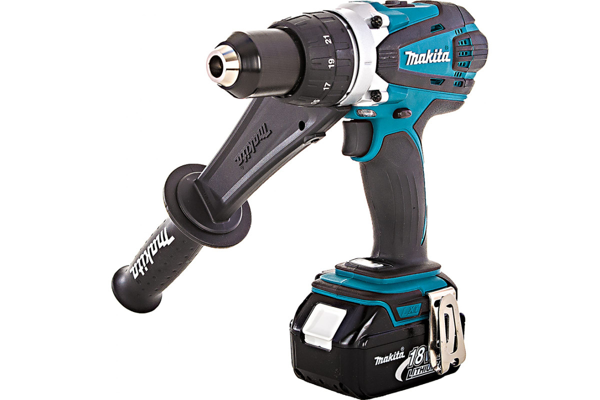 Аккумуляторная дрель-шуруповерт Makita DDF458RFE высокой мощности обеспечивает отличную производительность. Смена рабочих насадок производится быстро без лишних усилий благодаря быстрозажимному патрону. Боковая рукоятка позволяет лучше контролировать рабочий процесс. В зависимости от плотности материала, можно выбрать один из 21 режима крутящего момента. Преимущества Makita DDF458RFE Защита от влаги и пыли; Высокая мощность и производительность; Электронная регулировка оборотов; Полностью металлический редуктор - для долгого срока службы; Функция реверса упрощает выведение застрявшего сверла; Отдельный переключатель режимов работы на корпусе; Индикатор уровня заряда батареи.