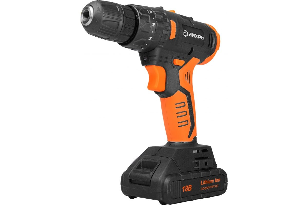 Аккумуляторная дрель-шуруповерт Вихрь ДА-18Л-2КУ/Б 72/14/23 подойдет для ремонтных работ в домашних условиях.