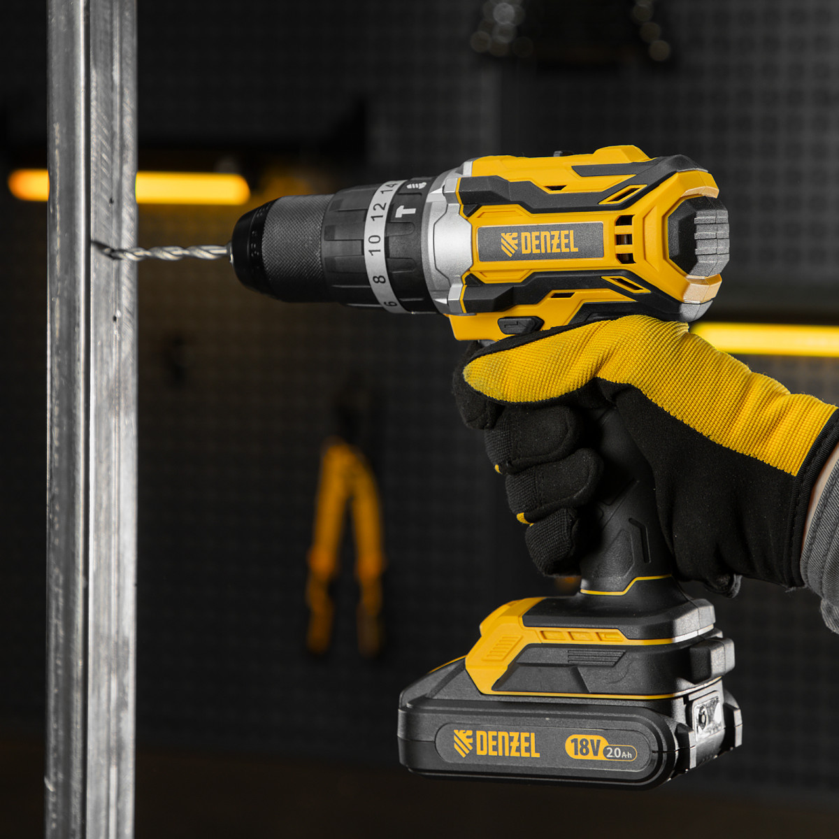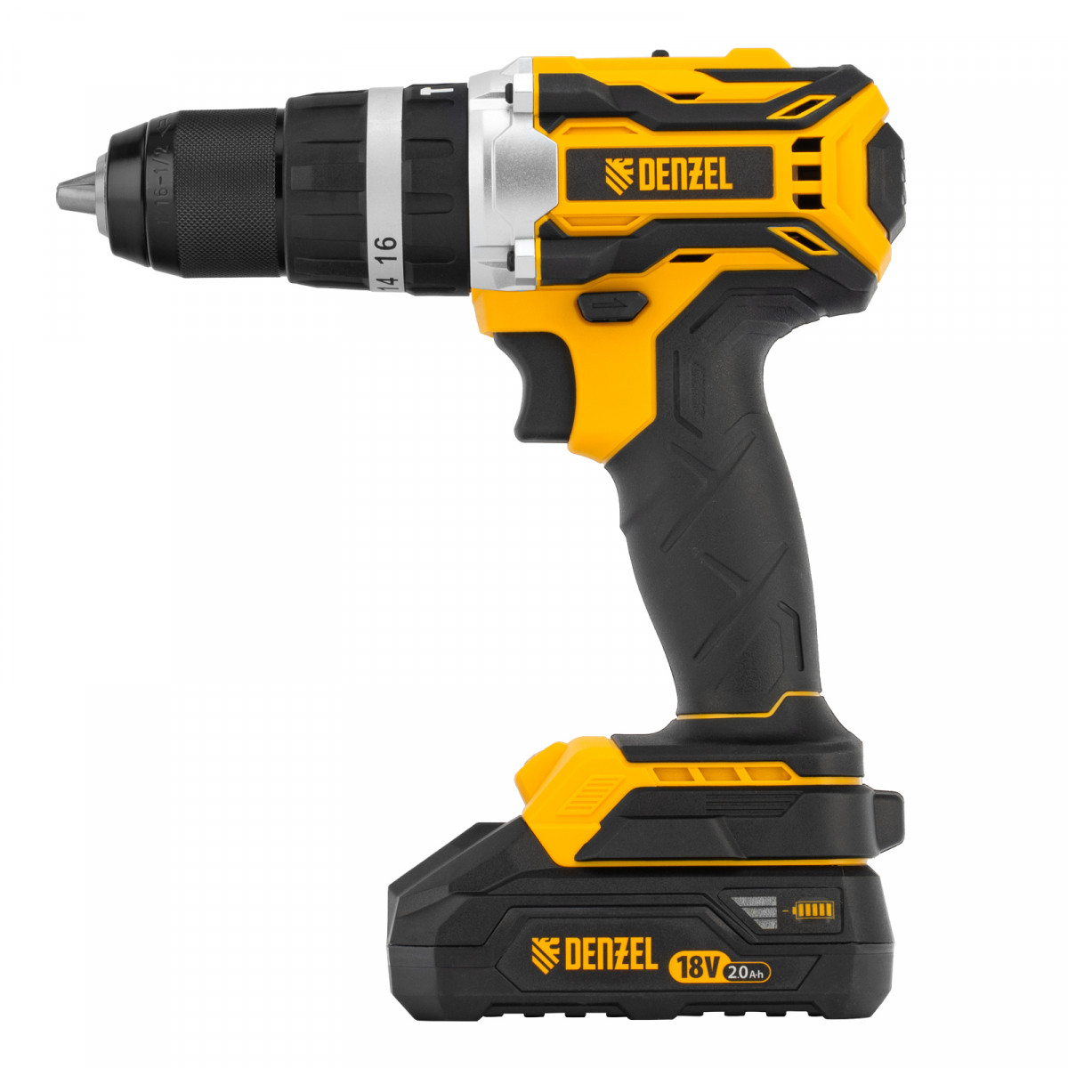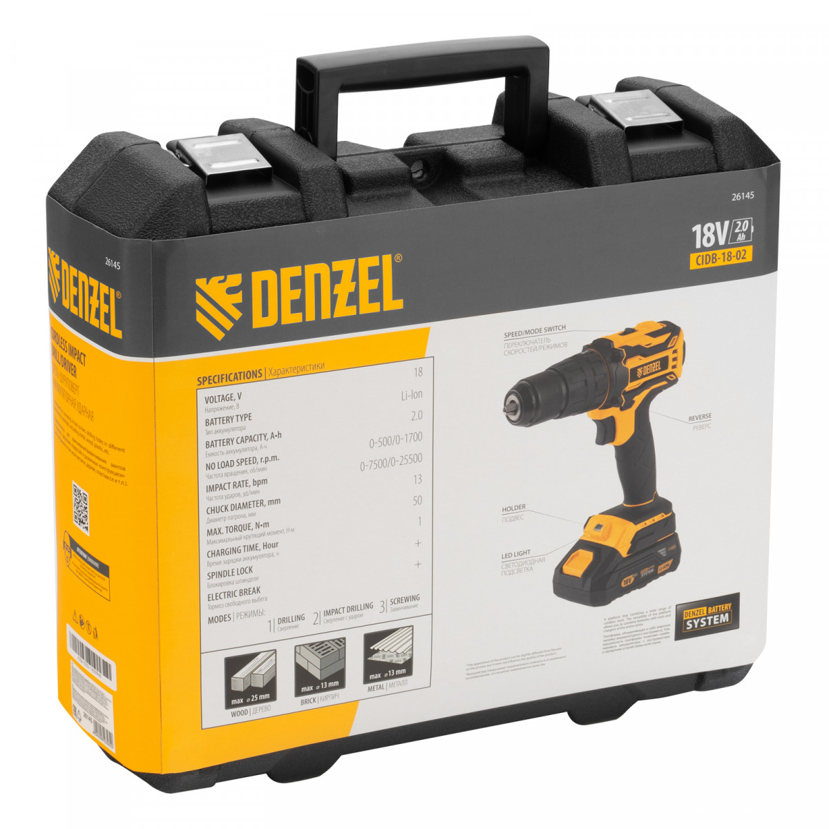 Дрель-шуруповерт аккумуляторная ударная бесщет CIDB-18-02, Li-Ion, 18 В Denzel
