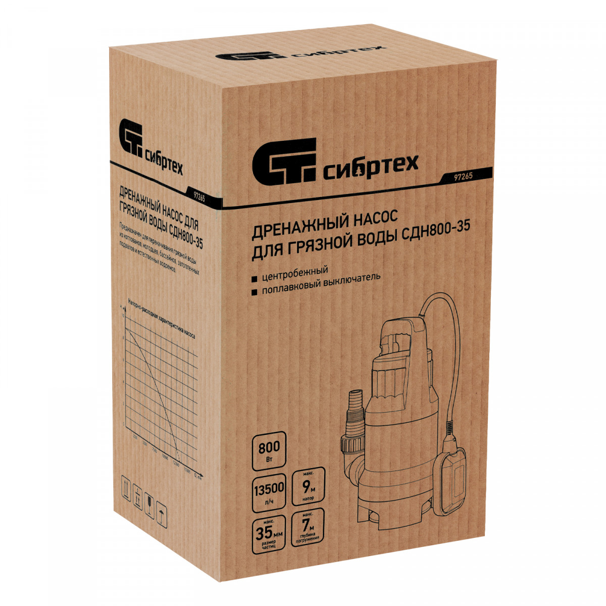 Дренажный насос для грязной воды СДН800-35, 800 Вт, напор 9 м, 13500 л/ч Сибртех