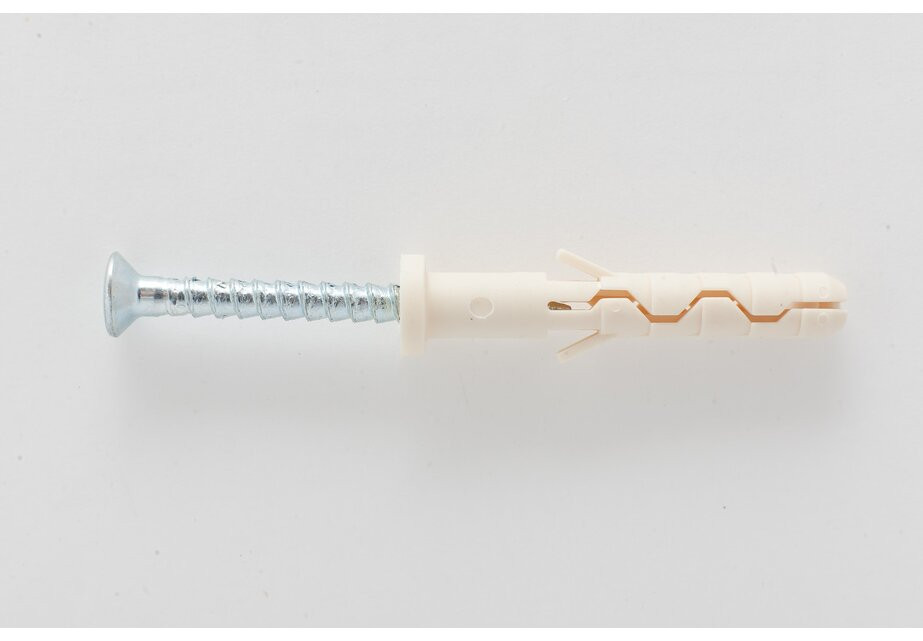Дюбель-гвоздь позволяет осуществить быстрый, сквозной монтаж. Просто просверлите отверстие через прикрепляемый материал, забейте гвоздь и крепление готово. Шлиц на шляпке позволяет демонтировать гвоздь. Диаметр сверла-6 мм, максимальная толщина прикрепляемого материала-10 мм Применение: бетон, кирпич, натуральный камень - Нагрузка: Бетон - 50 кг
