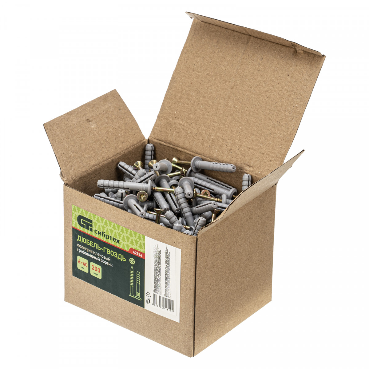 Дюбель-гвоздь полипропиленовый грибовидный бортик 6 x 40 мм, 200 шт Сибртех