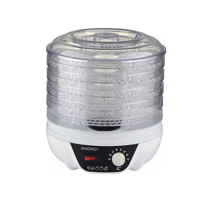 Тип: конвективная, материал поддонов: прозрачный пластик, число поддонов: 5, мощность: 230 Вт, регулировка температуры сушки, управление: механическое, максимальная загрузка: 3 кг, особенности: защита от перегрева, индикация включения