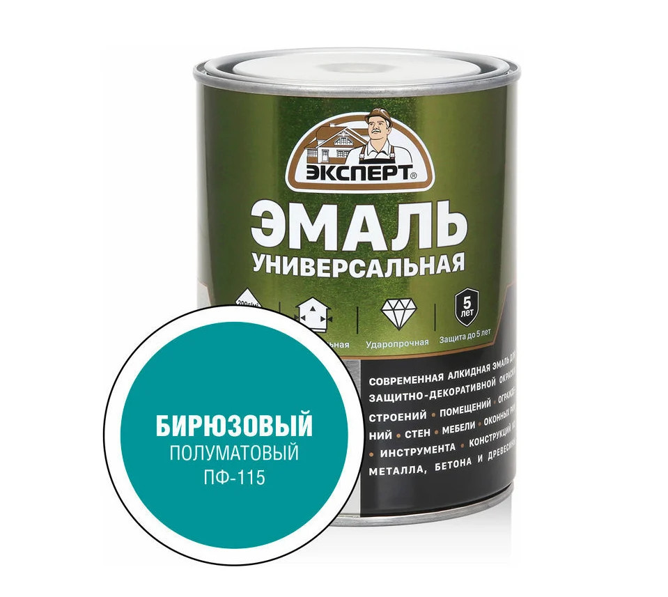 Эмаль ПФ-115 универсальная алкидная ЭКСПЕРТ полуматовая бирюзовая 0,8 кг