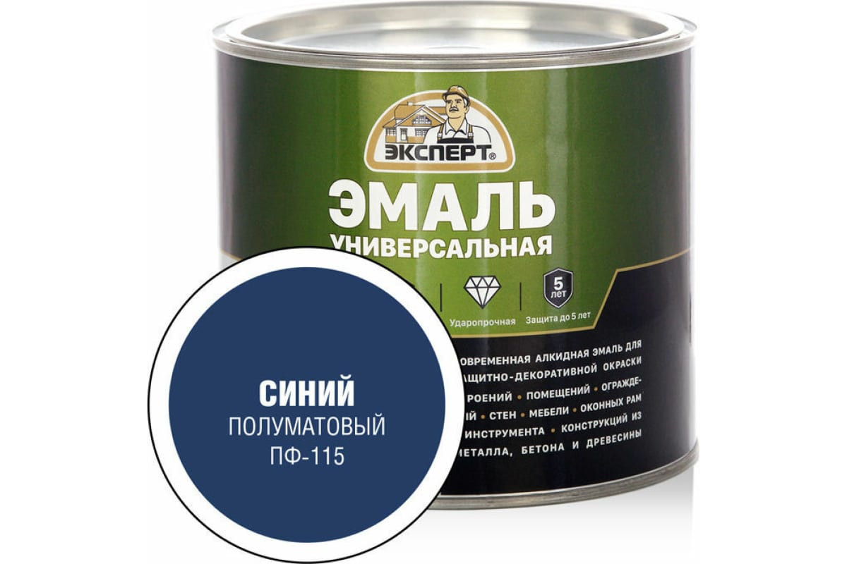 Эмаль ПФ-115 универсальная алкидная ЭКСПЕРТ полуматовая синяя 1,8кг