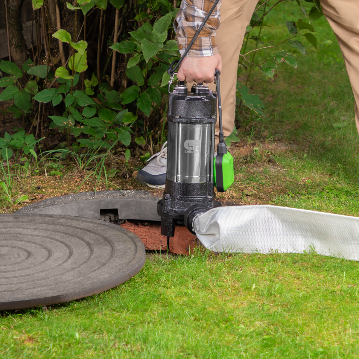Фекальный насос Сибртех СФН1100-Н 99804 с ножом имеет мощность 1100 Вт и производительность до 18000 л/ч, обеспечивает напор до 10 м, подходит для шлангов диаметром 2 дюйма и применяется для работы с чистой или грязной водой на глубине погружения до 5 м. Используется для перекачки жидкости из стоков, выгребных ям, емкостей и водоемов, а также для аварийной откачки воды из подвалов, погребов, траншей, котлованов. Его можно использовать для организации систем полива на даче. Насос оптимален для установки в канализационной системе: специальный нож измельчает крупные частицы, что позволяет избежать засорения. Также работает с холодными стоками, при этом температура жидкости не должна превышать 35 градусов.
