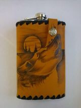 Фляжка из нержавеющей стали, со съемным чехлом из натуральной кожи, с художественным оформлением