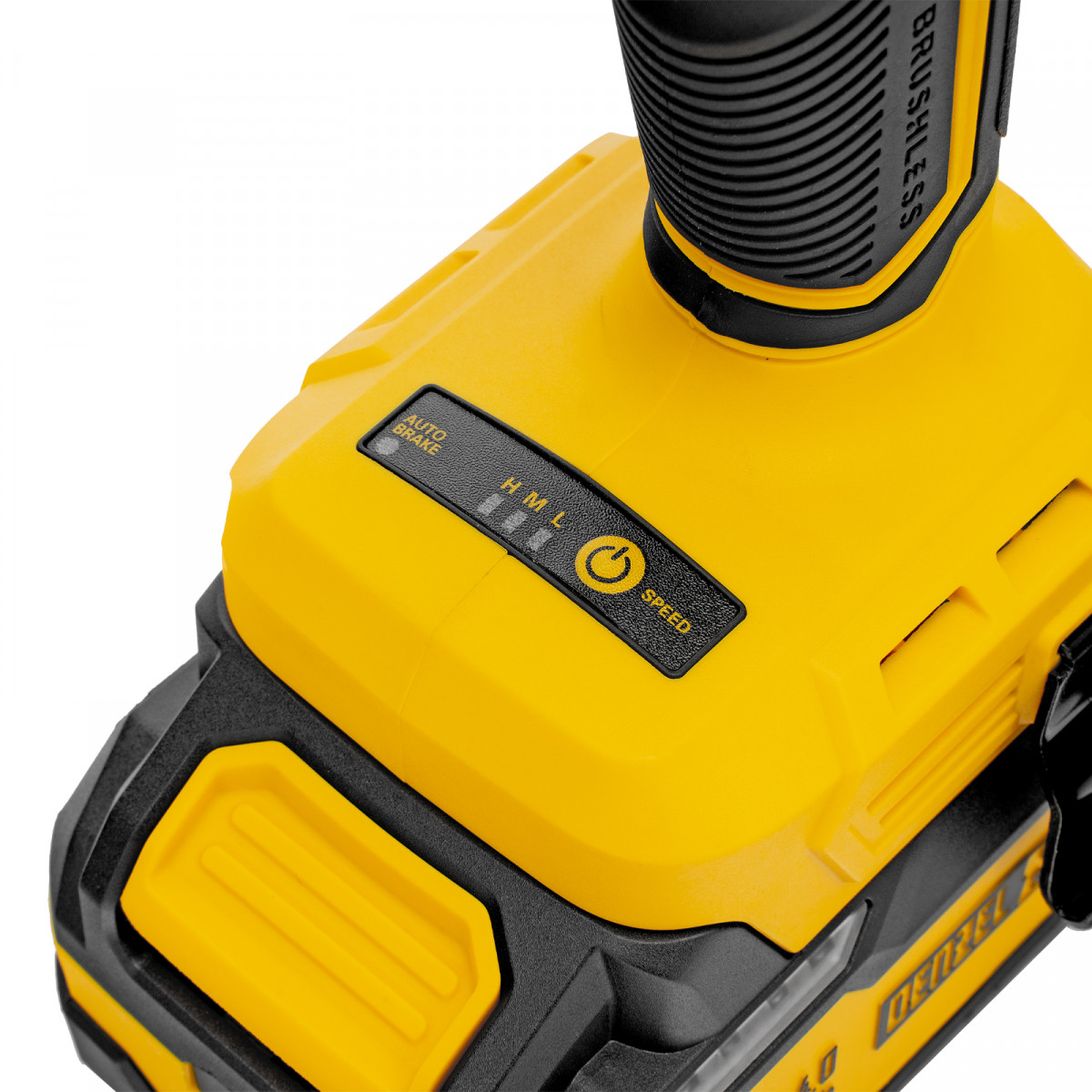 - Универсальность — аккумулятор Li-Ion емкостью 4 А·ч совместим со всеми инструментами единой платформы Denzel Power System 20V.