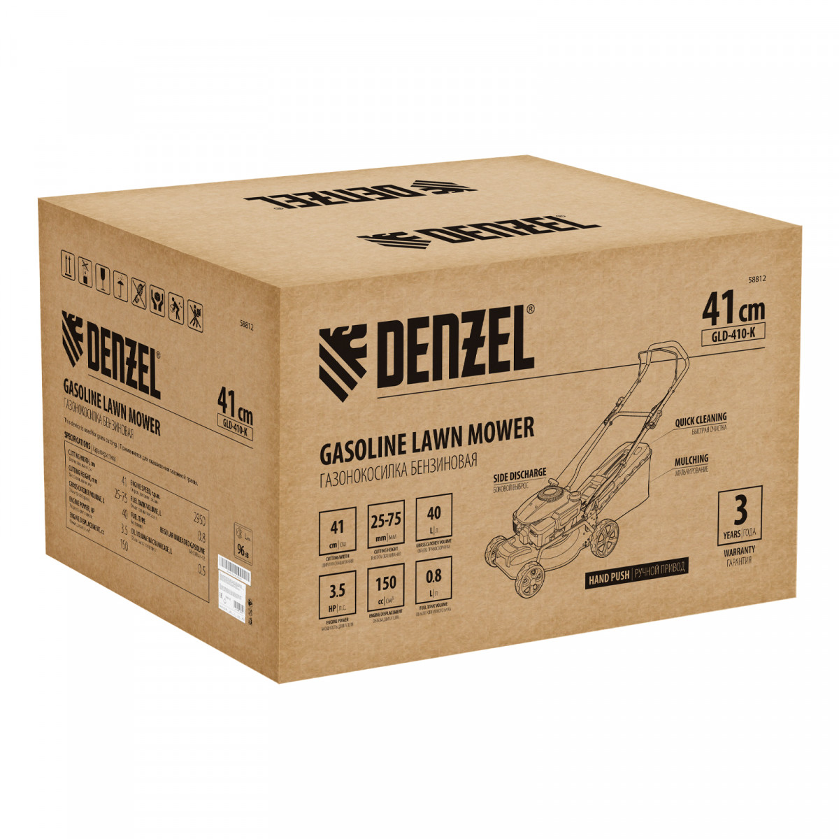 Ключевое отличие газонокосилки Denzel GLD-410-K от конкурентов — наличие функций мульчирования и бокового выброса, а также уникальный дизайн.