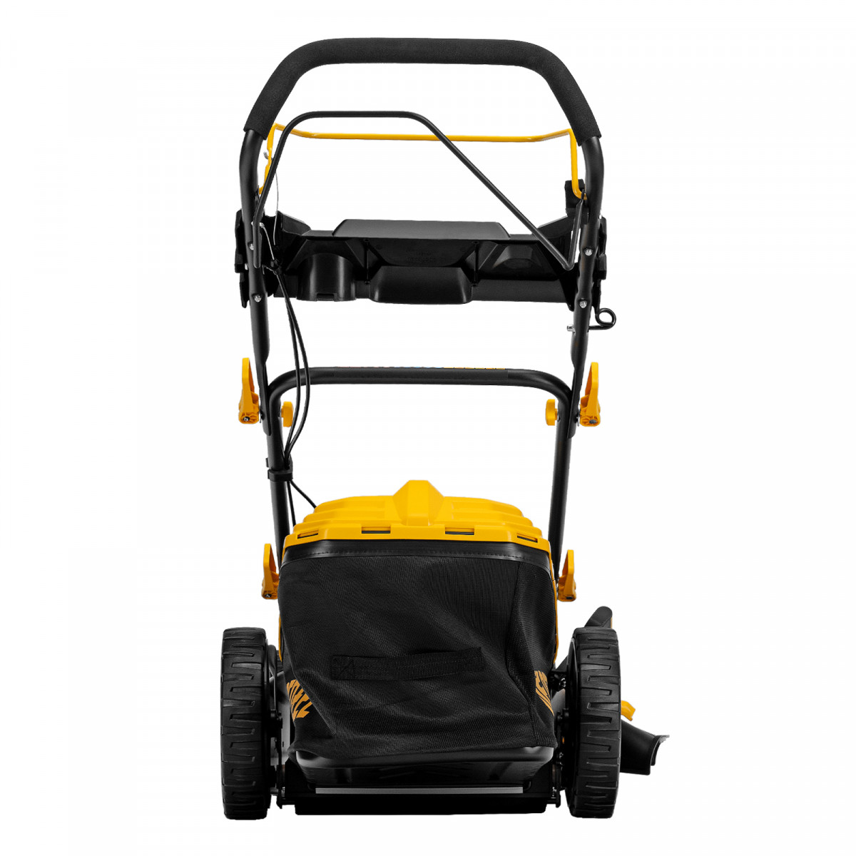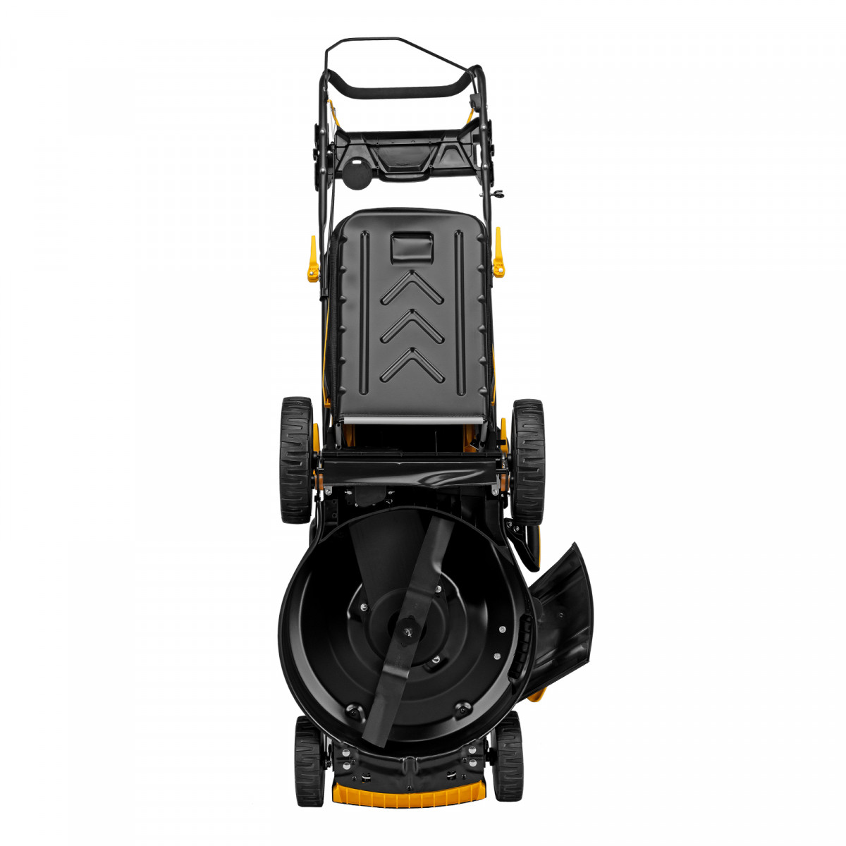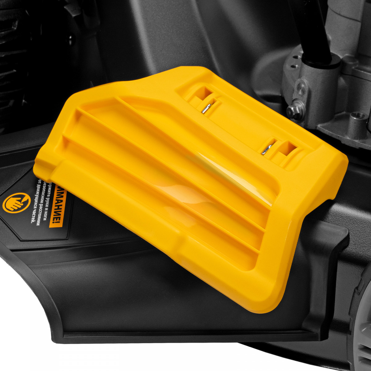 • Продуманная конструкция и стильный дизайн — оптимизированная форма деки способствует лучшему всасыванию травы, а матовая краска придает эффектности.