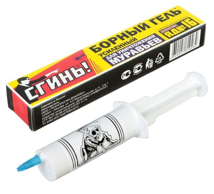 Гель от муравьев, действующее вещество: диазинон 0,5%, борная кислота 10%