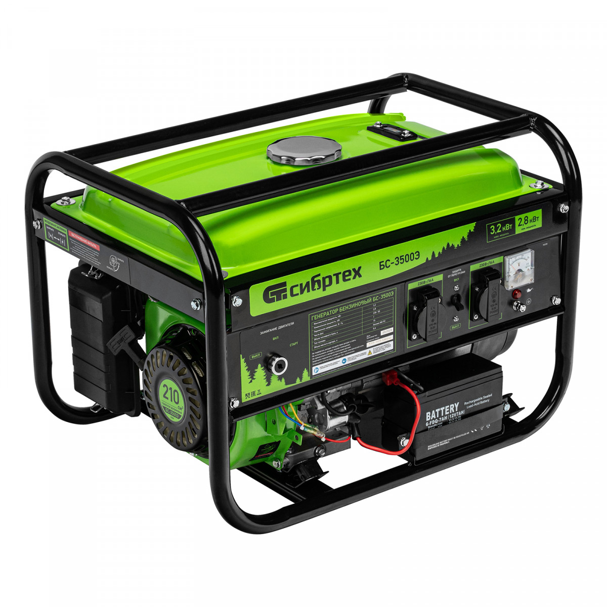 Генератор бензиновый БС-3500Э, 3.2 кВт, 230В, 4-х тактный, 15 л, электростартер Сибртех