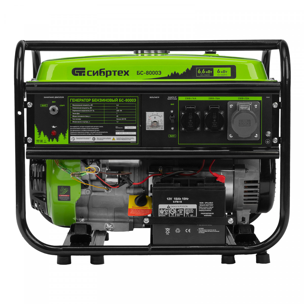 Генератор бензиновый БС-8000Э, 6,6 кВт, 230В, четырехтактный, 25 л, электростартер Сибртех