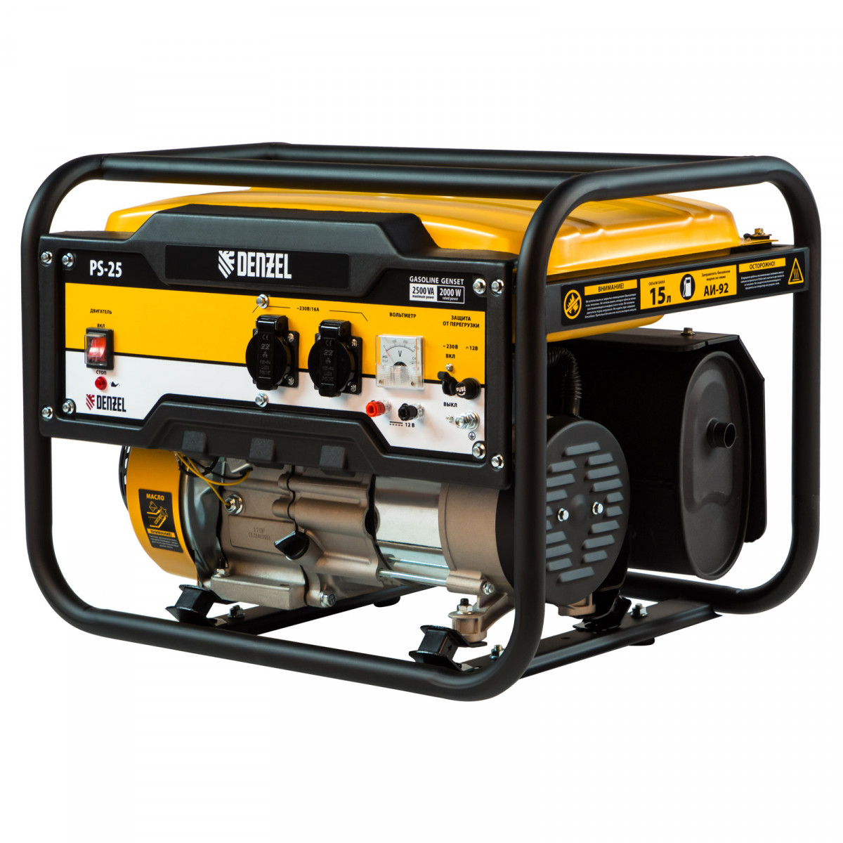 Генератор бензиновый PS 25, 2.5 кВт, 230 В, 15 л, ручной стартер Denzel