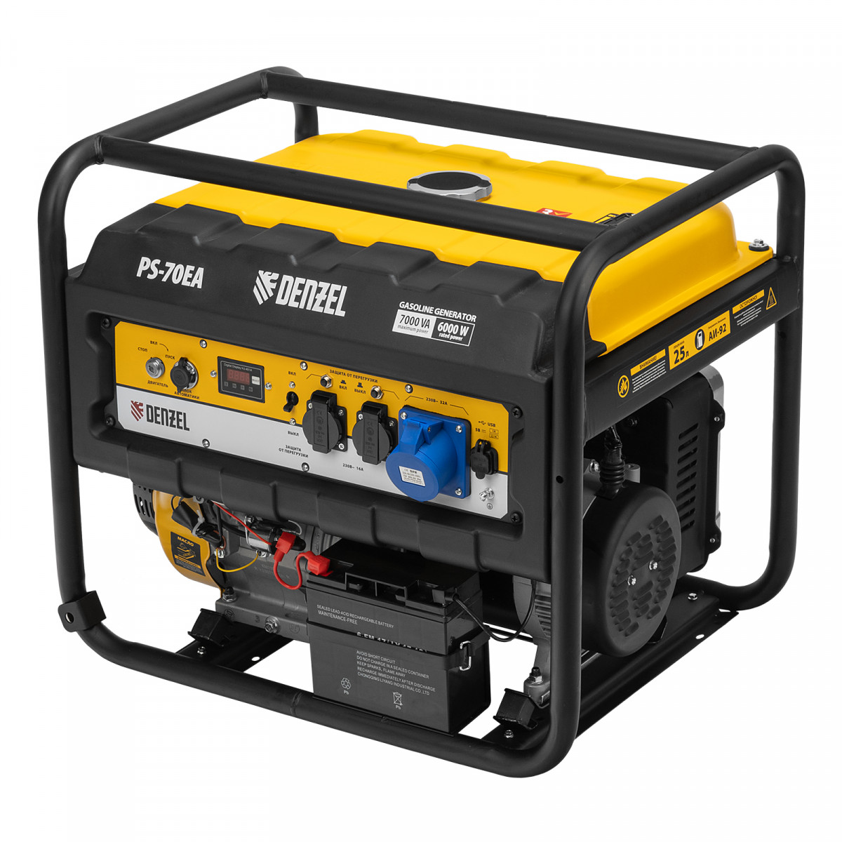 Генератор бензиновый PS 70 EA, 7.0 кВт, 230 В, 25 л, коннектор автоматики, электростартер Denzel