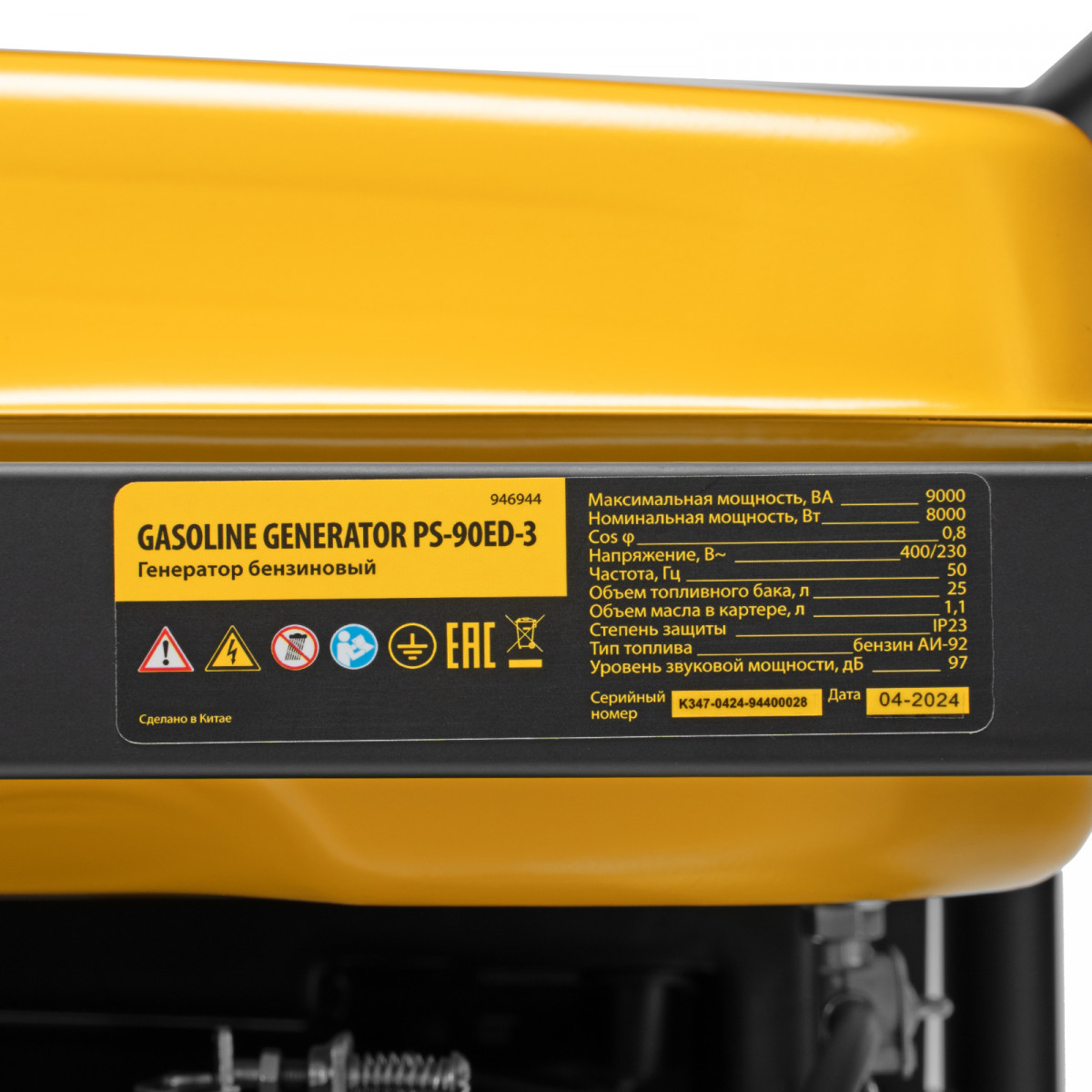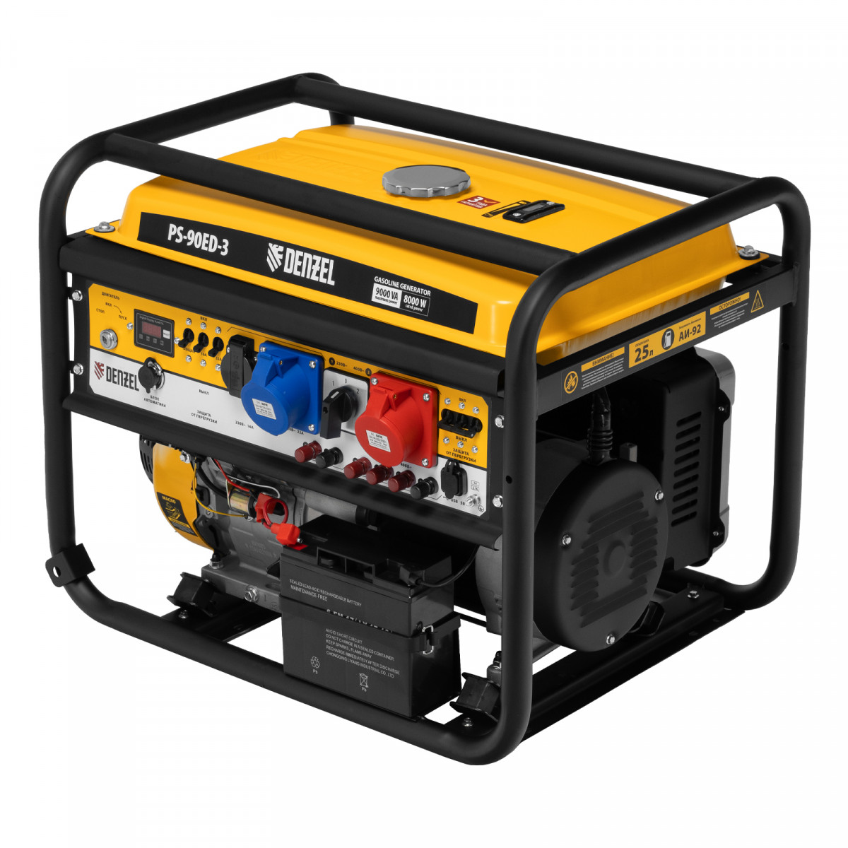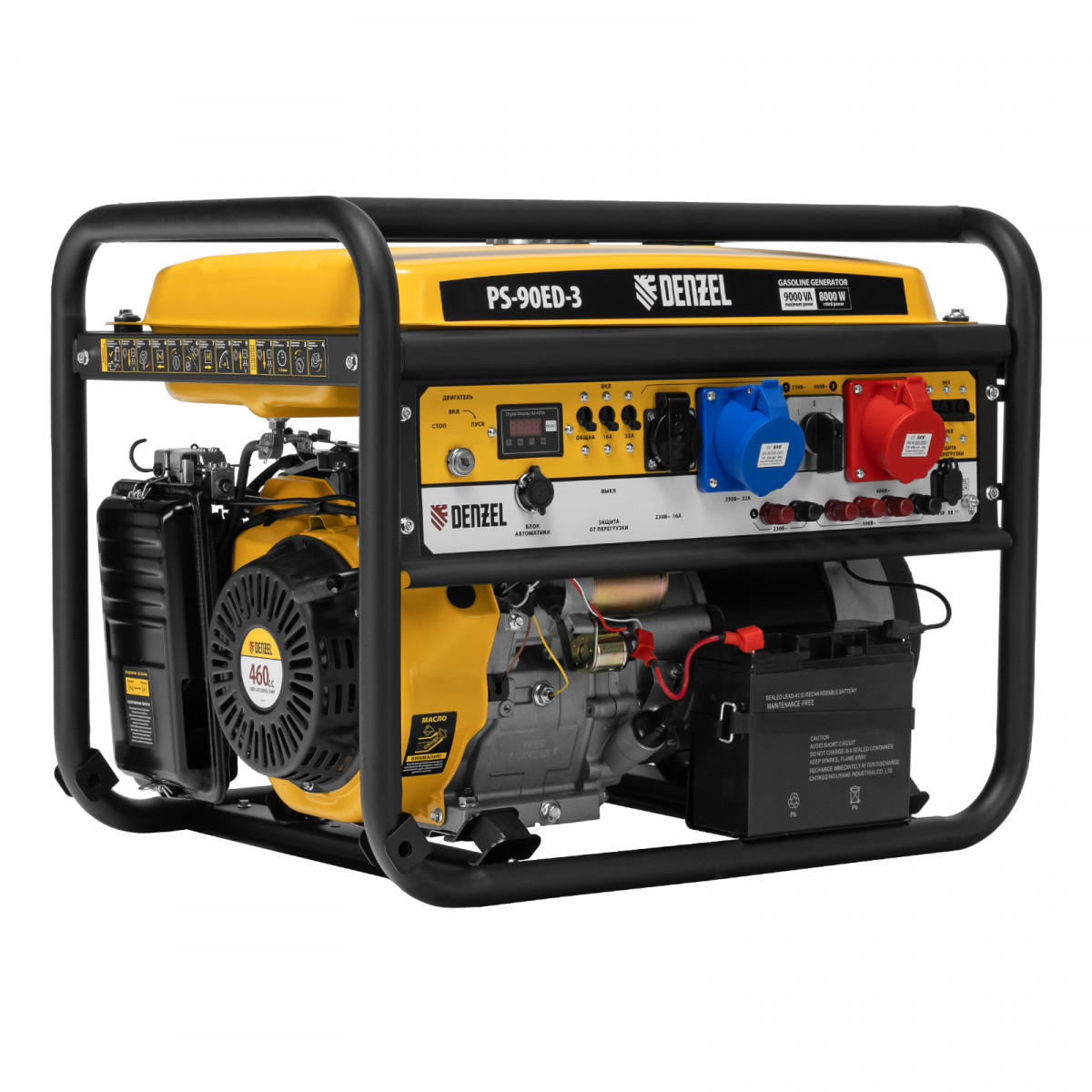 Генератор бензиновый PS 90 ED-3, 9.0 кВт, переключение режима 230 В/400 В, 25 л, электростартер Denzel