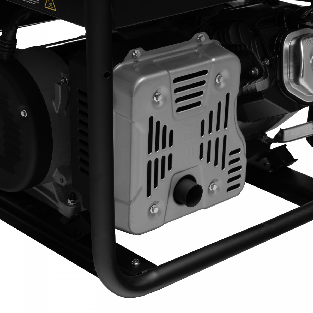 - Прочная конструкция — усиленная рама (диаметр труб 32 мм) защищает генератор от повреждений.