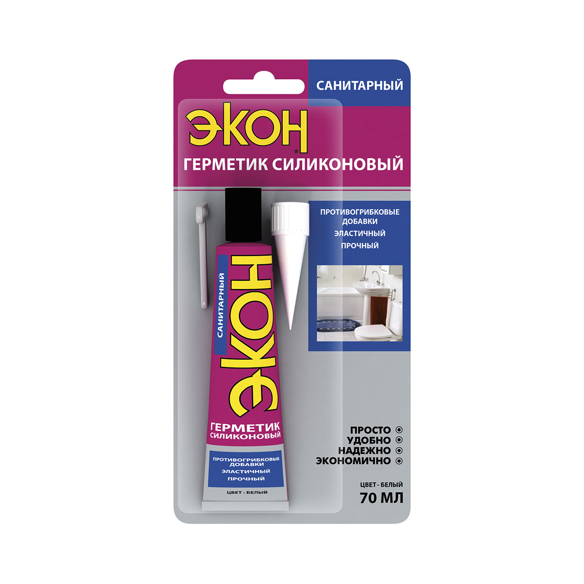 Герметик силиконовый санитарный ЭКОН белый 70 мл