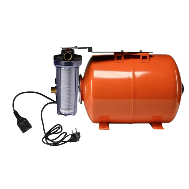 Система автоматического водоснабжения представляет собой комплект оборудования, предназначенный для организации автономного водоснабжения частных домов, дач, коттеджей и других объектов. Она включает в себя гидробак на 50 литров, фильтр грубой очистки, манометр и реле давления. Может работать совместно со скважинным или поверхностным насосом. Система оснащена блоком автоматики, который контролирует уровень давления и автоматически запускает насос при падении давления ниже установленного уровня. Это обеспечивает постоянное наличие воды в кранах и бытовой технике. Максимальное давление воды составляет 8 атм. Специальный датчик предотвращает работу насоса без воды, защищая его от перегрева и выхода из строя. Оборудование изготовлено из качественных материалов, устойчивых к коррозии и механическим повреждениям. Мембрана изготовлена из пищевой резины, что гарантирует отсутствие постороннего привкуса в воде. Комплект поставляется полностью готовым к установке, что значительно упрощает монтаж. Возмо