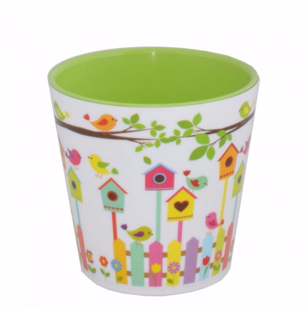 Горшок ДЕКО 1 л декор Птицы со вставкой, диаметр 13 см, высота 12,5 см.