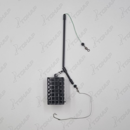 фидерная кормушка, противозакручиватель, поводок с крючком, вертлюг