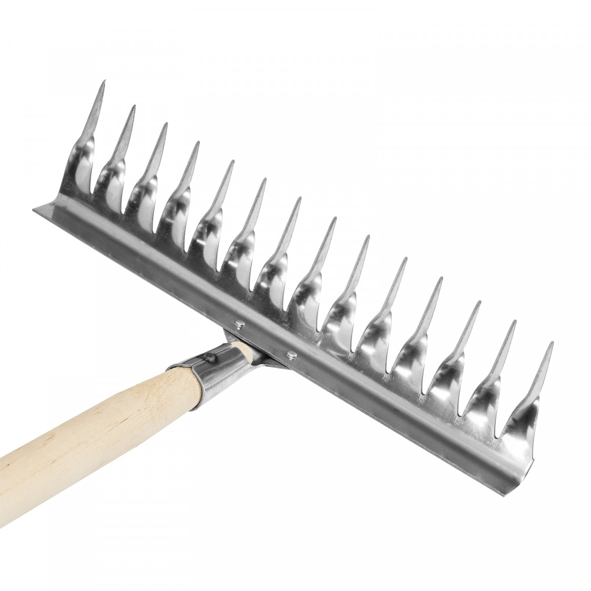 Нержавеющая сталь обеспечивает высокую стойкость к коррозии и обеспечивает долговечность граблей.