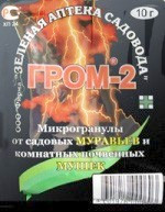 Для борьбы с садовыми муравьями снять верхний слой (2-3 см) земли с муравейника и в зависимости от его площади равномерно рассыпать по поверхности 1-3 г препарата. При обнаружении муравьев около строений препарат вносится в места скопления и на путях их передвижения. Место внесения препарата присыпать землей или укрыть фанерой, рубероидом и т.п. Муравьи исчезнут из муравейника через 2-4 дня. Длительность действия препарата 2-3 месяца. Содержимое упаковки рассчитано на обработку 9 5-10 кв.м.