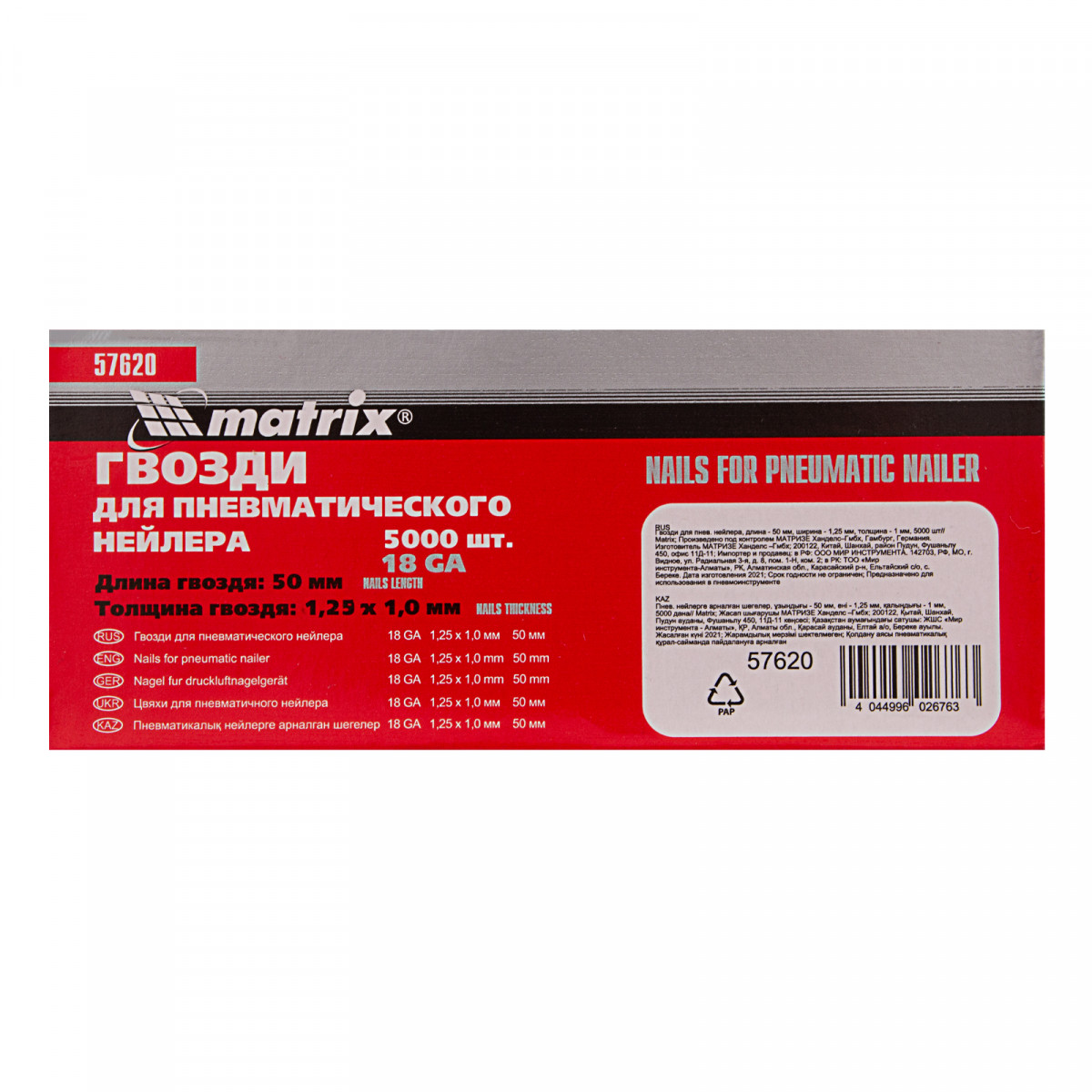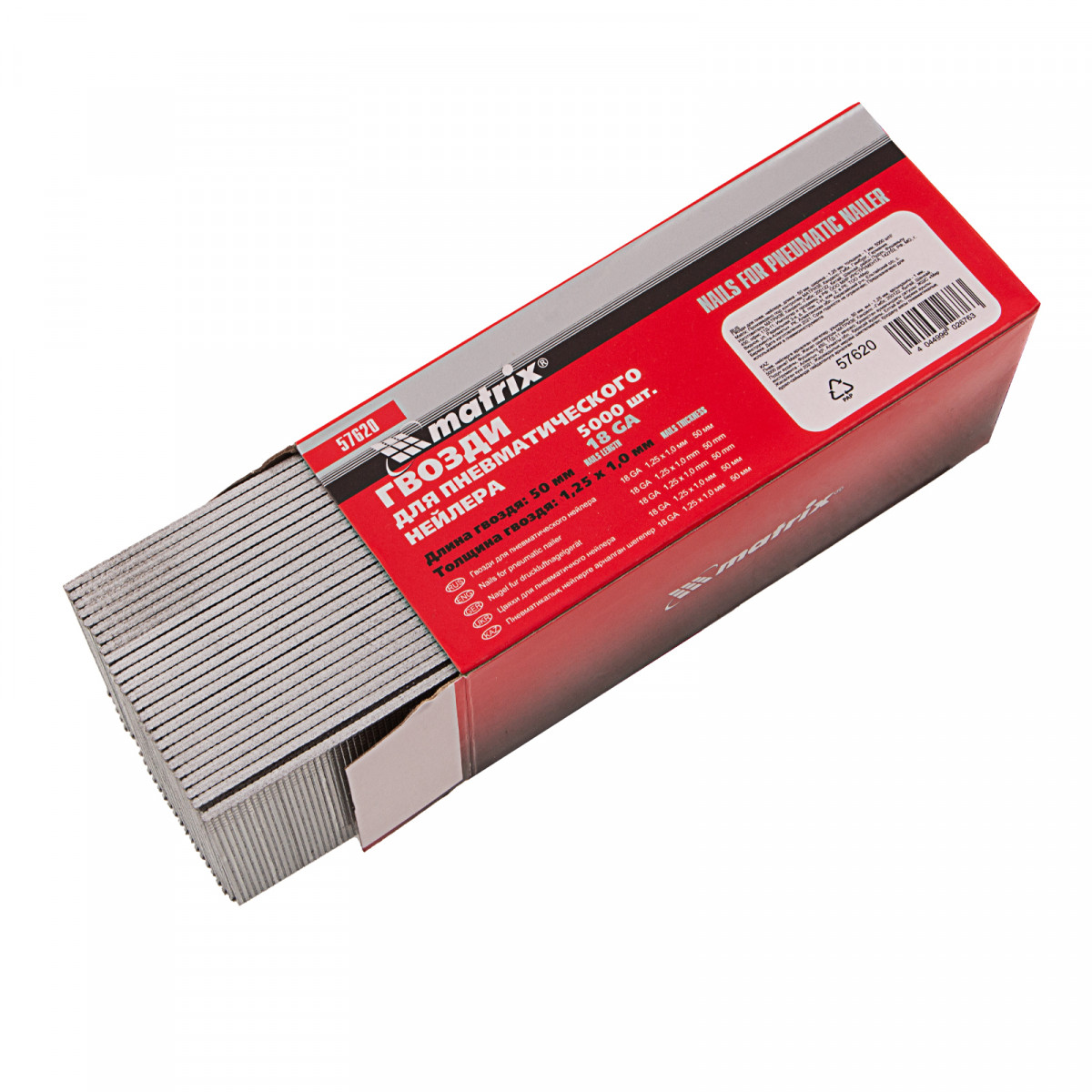 Гвозди для пневматического нейлера, длина 50 мм, ширина 1.25 мм, толщина 1 мм, 5000 шт Matrix