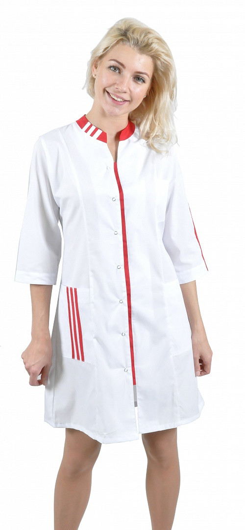 Халат медицинский Спринт (тк.тиси), белый/красный