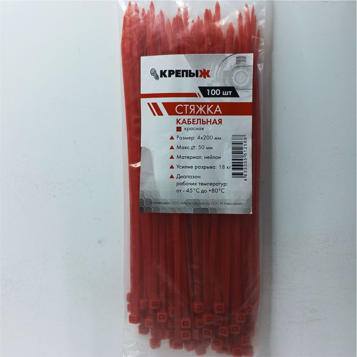 Хомут нейлоновый 4*200 мм красный КРЕПЫЖ
