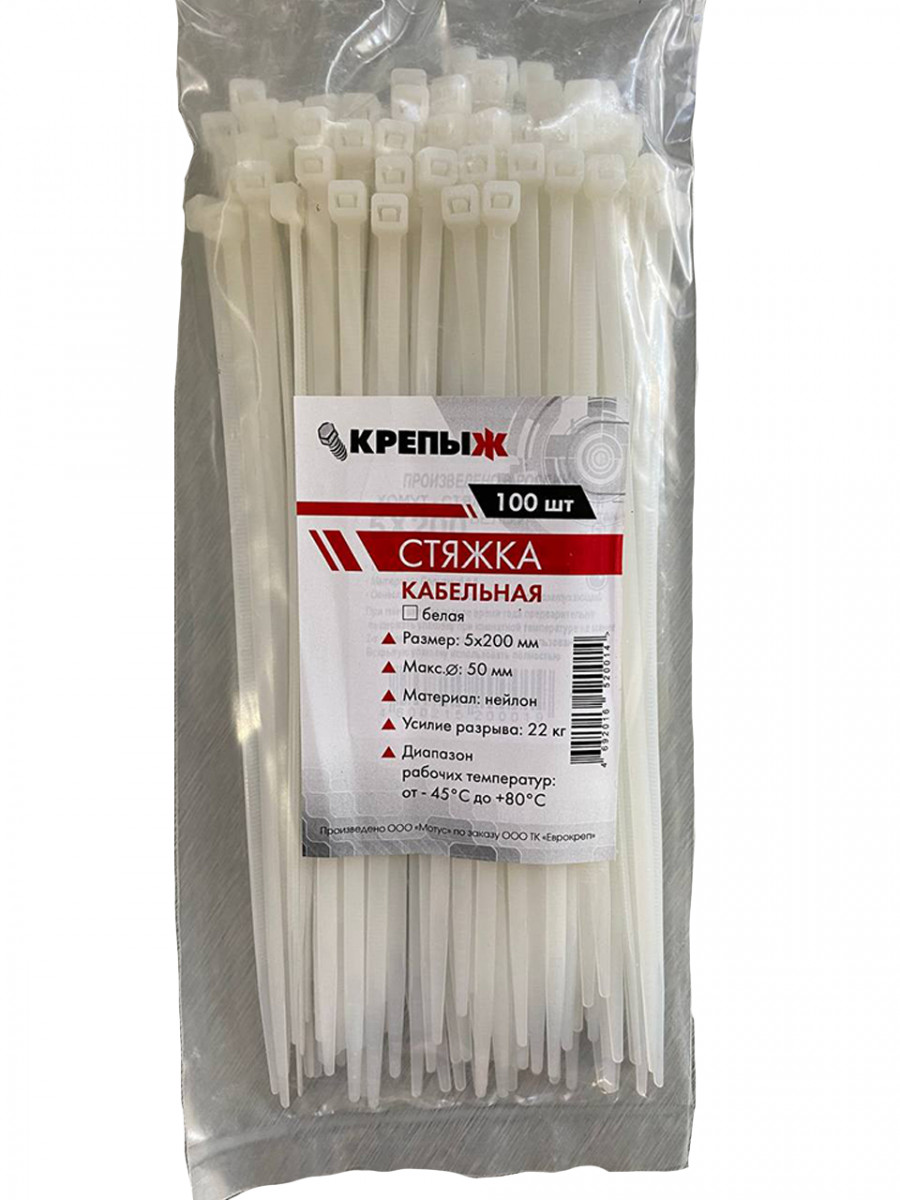 Хомут нейлоновый 5*200 мм белый КРЕПЫЖ (100шт)