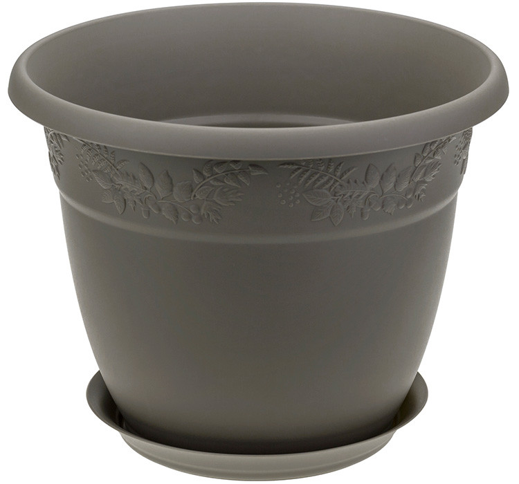 Кашпо Рябина 14,7л пластиковое с поддоном французский серый