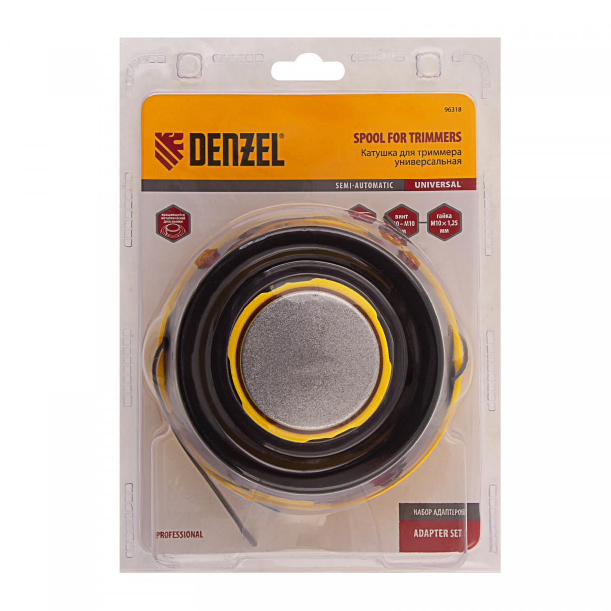 Катушка триммерная полуавтоматическая, легкая заправка лески, гайка M10x1.25, винт M10-M10, подшипник Denzel