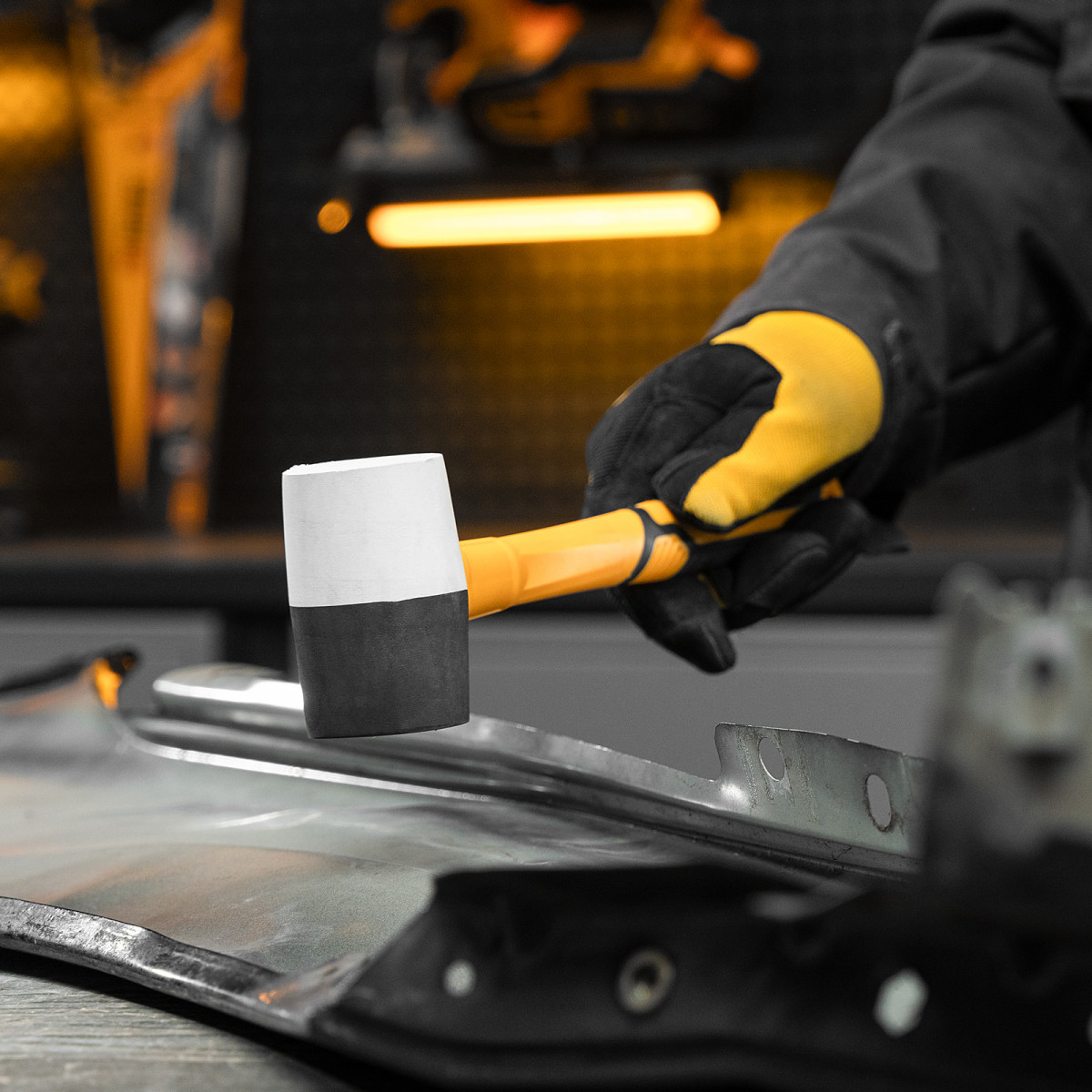 Резиновая киянка Denzel 11101 с бойком из черно-белой резины весом 225 г и фибергласовой рукояткой с TPR-покрытием, применяется во время монтажных, сборочных и кузовных работ, укладки плитки. Резиновый боек с высокими амортизирующими свойствами оптимален для работы с чувствительными к давлению материалами. Инструмент характеризуется высокой прочностью и стойкостью к агрессивному воздействию, подходит для профессионального использования.