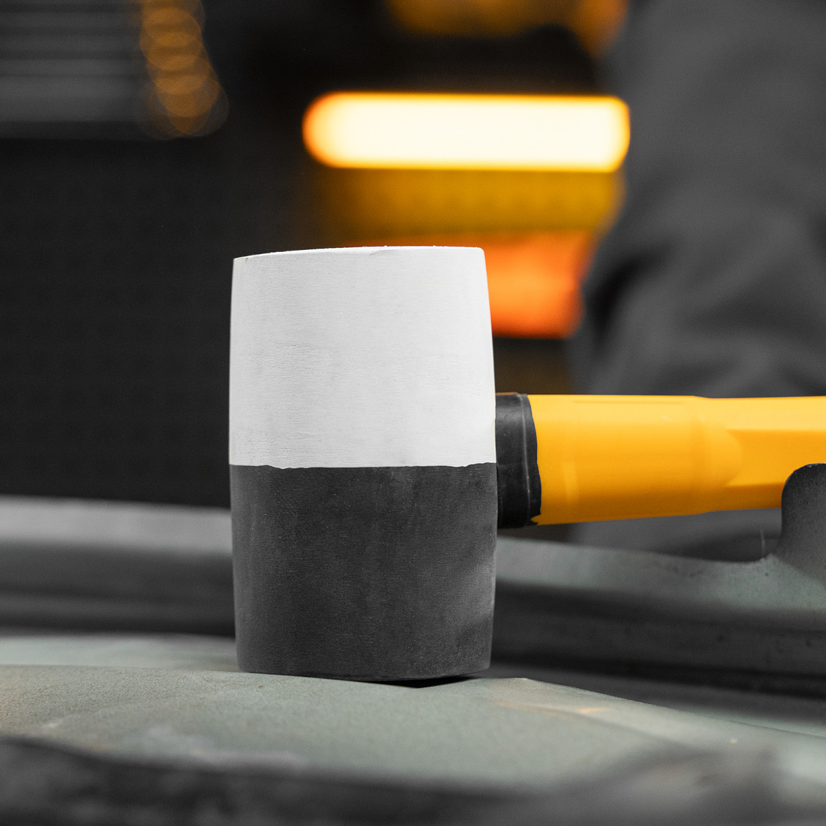 • Безопасная работа со светлыми материалами — часть бойка из белой резины не оставляет следов.