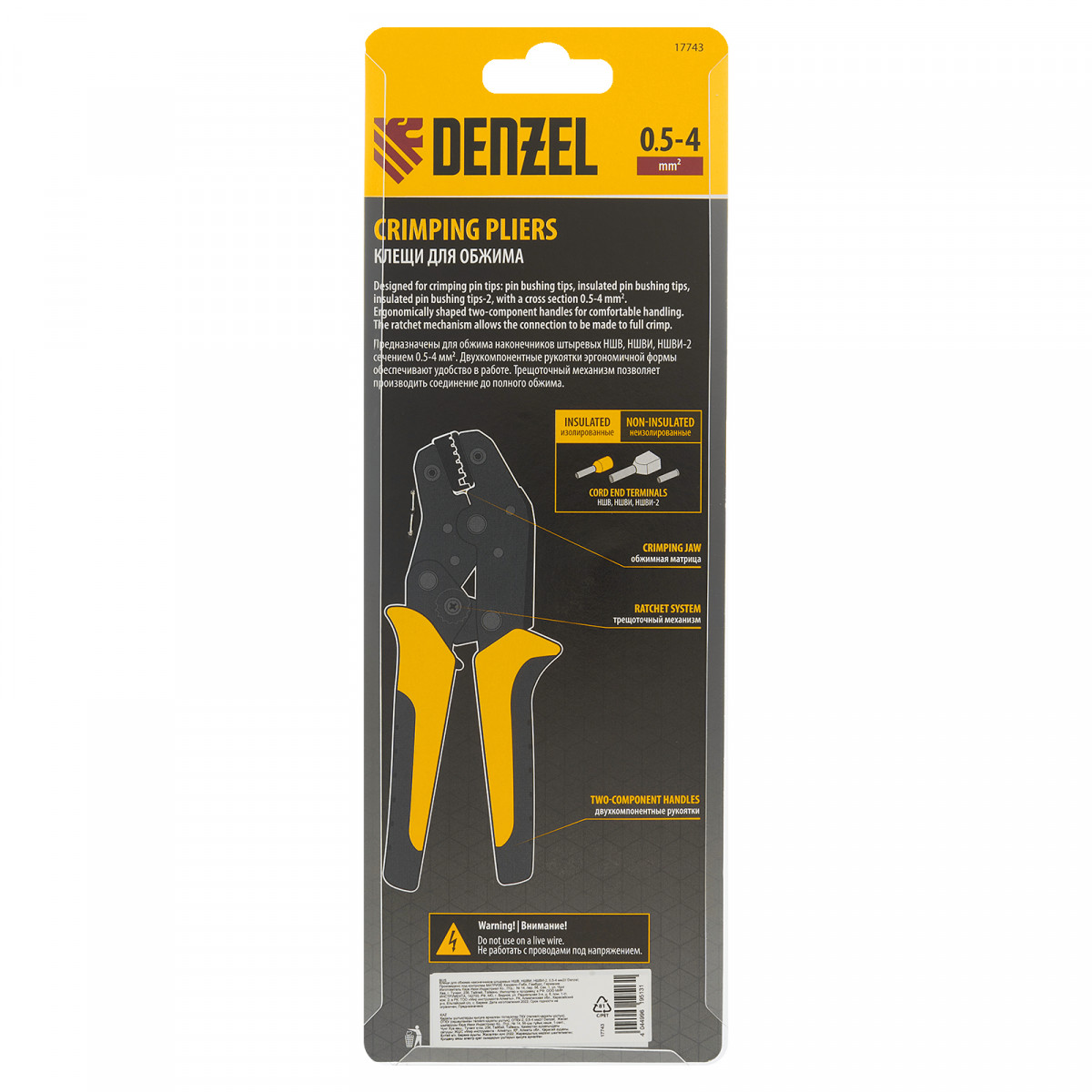 Клещи для обжима наконечников штыревых НШВ, НШВИ, НШВИ-2, 0,5-4 мм2 Denzel